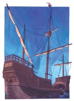 Mis à part quelques remarques misogynes à l’encontre d’Ana, le voyage se passe bien… Jusqu’au moment où la vigie croit apercevoir une terre ferme. La joie de l’équipage est de courte durée, car à la place d’un nouveau continent ce sont d’immenses vagues, puis un véritable précipice que doit affronter la petite flottille.