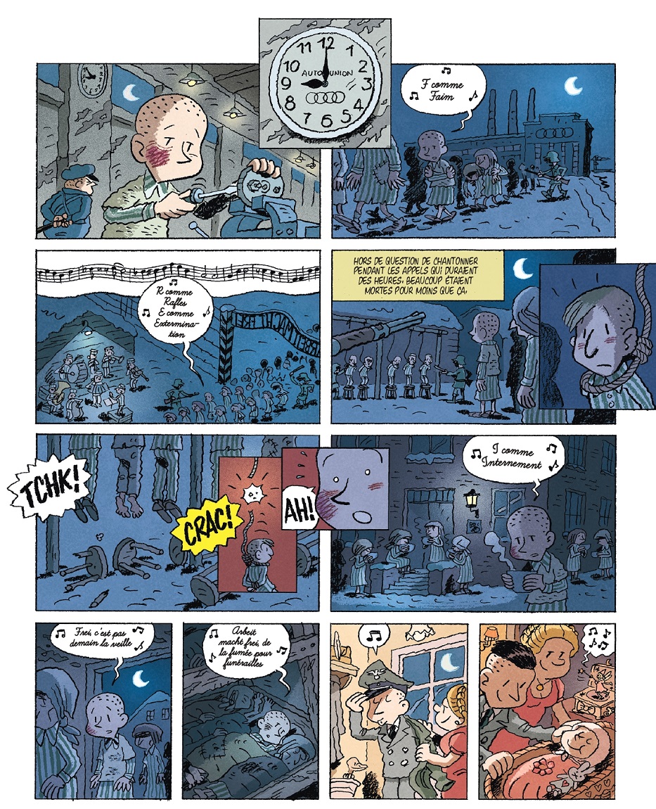 On ne peut que louer le trait stylisé, rond et expressif, de David Evrard pour cette série. Il permet de rendre acceptable les événements abominables vécues par Simone : de la vie dans les camps aux marches de la mort ou des sévices imposés par les SS à l’assassinat de son père sous ses yeux. Le dessinateur ne néglige pas pour autant les décors : il rend palpable le froid meurtrier qui régnait en Pologne à la libération des camps ou le Paris enfin joyeux du printemps 1945. « Mais un jour dans notre vie, le printemps refleurira » clôt une trilogie admirable. C’est une biographie salutaire sur la vie humble et digne d’une déportée, dont le témoignage est toujours vivant et accessible aux plus jeunes grâce à ce média formidable qu’est la bande dessinée.