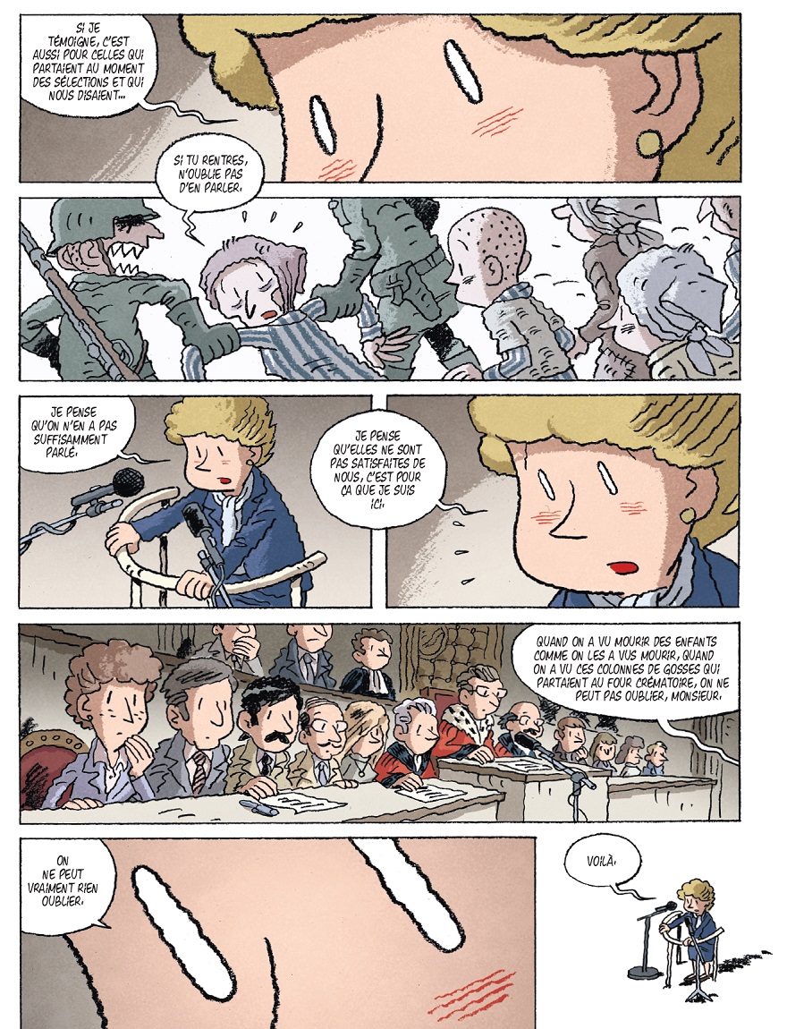 L’ensemble forme un tout cohérent : de la justesse dans la transcription du témoignage d’une adolescence brisée par la déportation et les sévices subies dans les camps nazis au devoir de mémoire honorée par une femme mure et toujours digne qui entend que justice soit rendue, pour éviter que les crimes contre l’humanité de la Seconde Guerre mondiale tombe dans l’oubli et se répètent à nouveau.