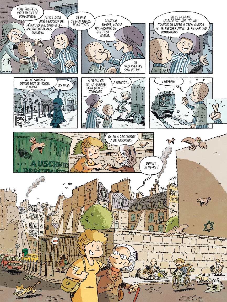 Il signe, avec « Simone », une trilogie sensible : une biographie éclatée comme des morceaux de mémoire qui reviennent. Toujours d’une grande justesse, le récit alterne séquences pendant la guerre et des scènes 40 plus tard ; de quoi faire comprendre l’importance du travail de mémoire pour les jeunes, et les moins jeunes, lecteurs.