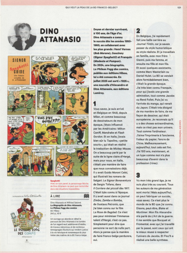 (1) Sur le centenaire Dino Attanasio, voir sur BDzoom.com : Un ouvrage très complet sur l’un des doyens des dessinateurs belges de BD : Dino Attanasio !.