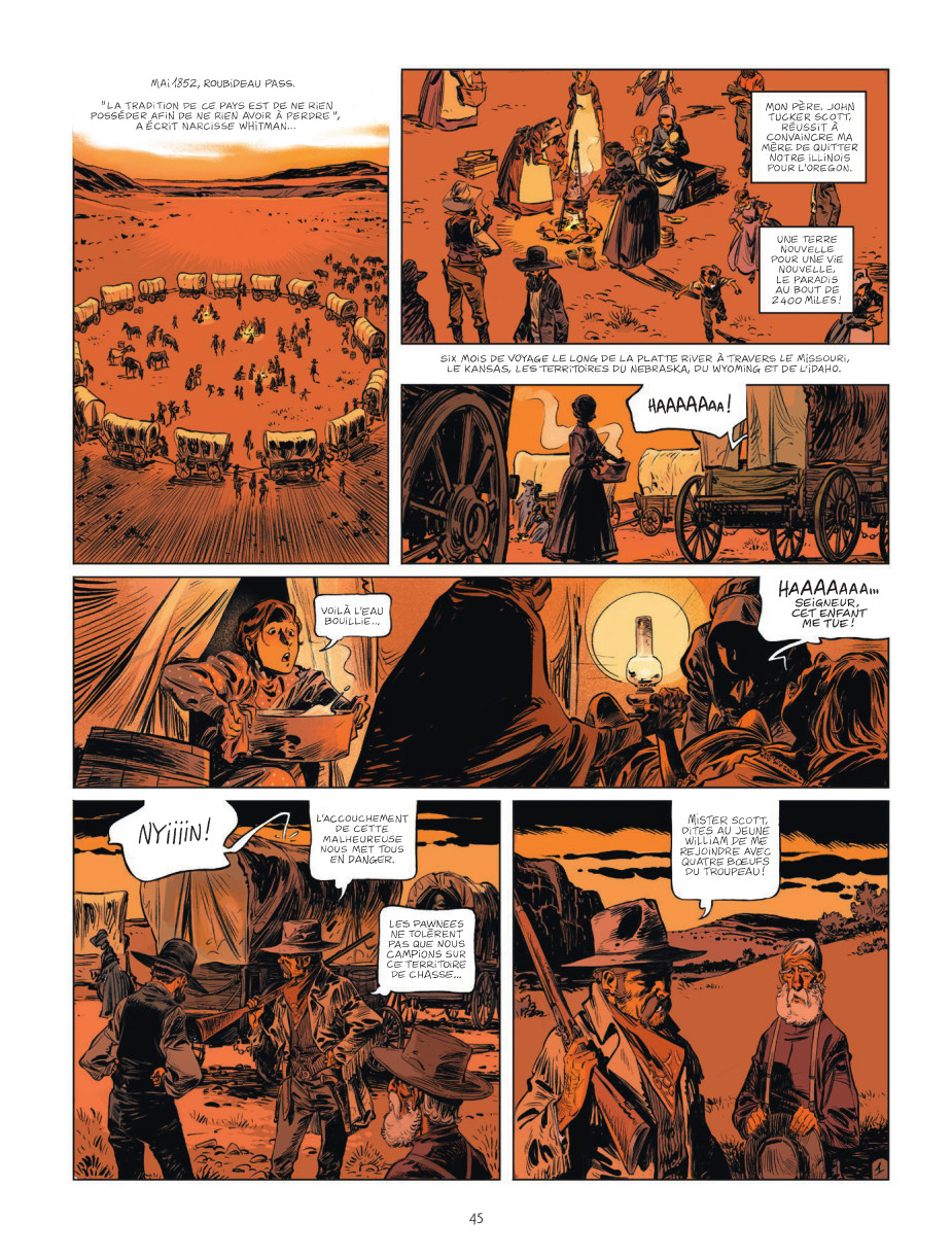 (1) Sur les différents tome de cette collection, voir notamment sur BDzoom.com : Les hommes de loi… de l’Ouest !Tiercé gagnant pour les collectifs westerns concoctés par Tiburce Oger chez Grand Angle !« Indians ! » : une chronique de l’Ouest amérindien !« Go West Young Man » : casting de rêve pour un western BD ! et « Ghost Kid » : quand Tiburce Oger repasse à l’Ouest….