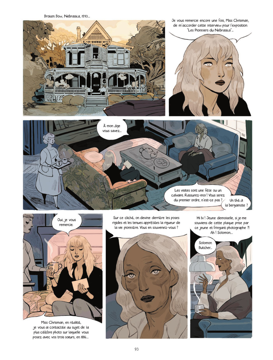 Parmi ces portraits d’artistes, aventurières ou pionnières aux parcours détonants, certains ont davantage focalisé mon attention : en premier lieu, celui de « Pionnière », magnifié par le trait exceptionnel, vivant et énergique de Virginie Augustin, mais aussi celui de « La Photographie », accompagné par l’élégance mesurée de Daphné Collignon, celui de « Ma maison sans fenêtre » de la délicate Laura Zuccheri, celui de « Filles de Loi », au solide dessin de Miss Prickly, ou encore celui mis en images par Elvire De Cock.