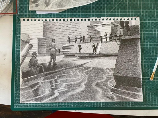 « Blake et Mortimer T31 : La Menace atlante » (version crayonnée) par Peter Van Dongen et Yves Sente