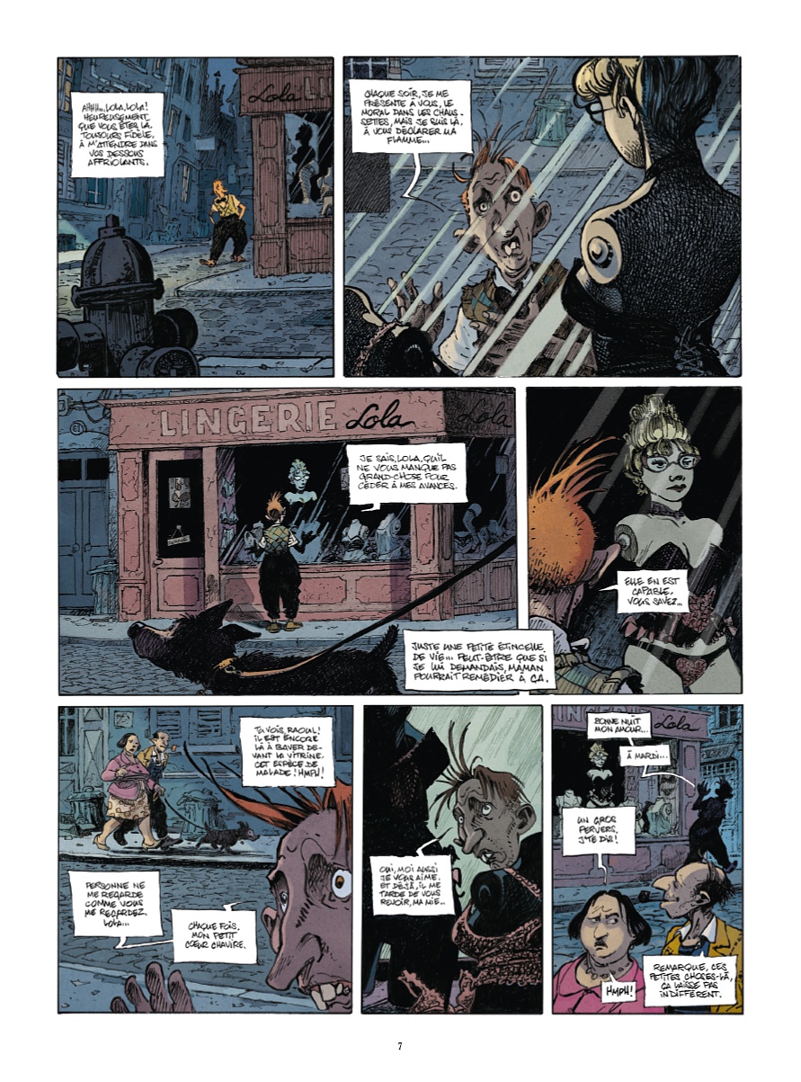 Cette jouissive bande dessinée tout à fait inclassable, où le burlesque côtoie l’étrange — ce qui peut être, on en convient, quelque peu déroutant pour certains —, est d’une inventivité visuelle folle. Elle provient, à l’origine, d’un synopsis écrit par Jean-Blaise Djian (1). Ce dernier l’a soumis à son complice scénaristique du « Grand Mort », lequel, emballé, s’est laissé emporter dans le délire de cette farce grivoise proposée et y a ajouté sa patte baroque et déjantée, ainsi que ses propres procédés de narration.