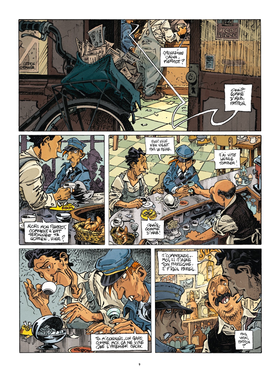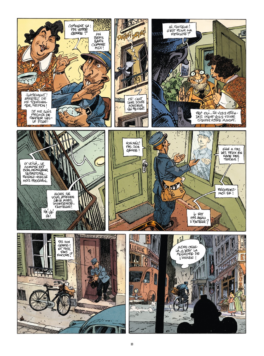 (3) La première apparition de l’inspecteur Ratier dans l’œuvre de l’ami Régis (qui aime particulièrement bien la sonorité de ce patronyme) date de sa collaboration avec la talentueuse Christine Oudot — qui n’a, hélas, pas persévéré dans la bande dessinée ! —, il y a déjà maintenant 24 ans ! En effet, il était l’un des personnages principaux de l’album de 94 planches « Fanfreluches pour une sirène », paru aux éditions Vents d’Ouest en 2001 : une rocambolesque comédie utilisant tous les ressorts du fantastique pour que les protagonistes plongent dans une cascade d’événements et une avalanche de rebondissements. Voilà un titre trop méconnu du grand Loisel que l’on ferait bien de rééditer !