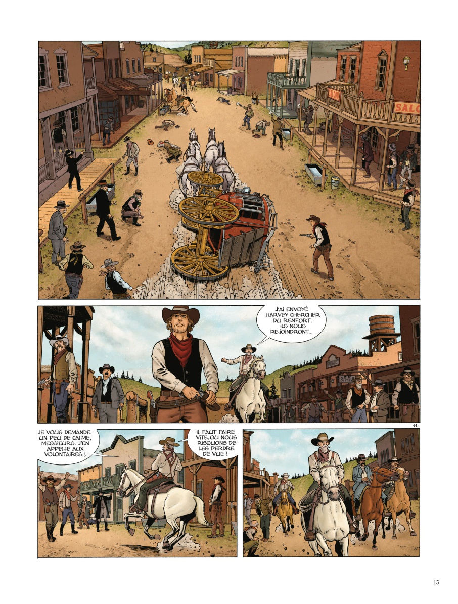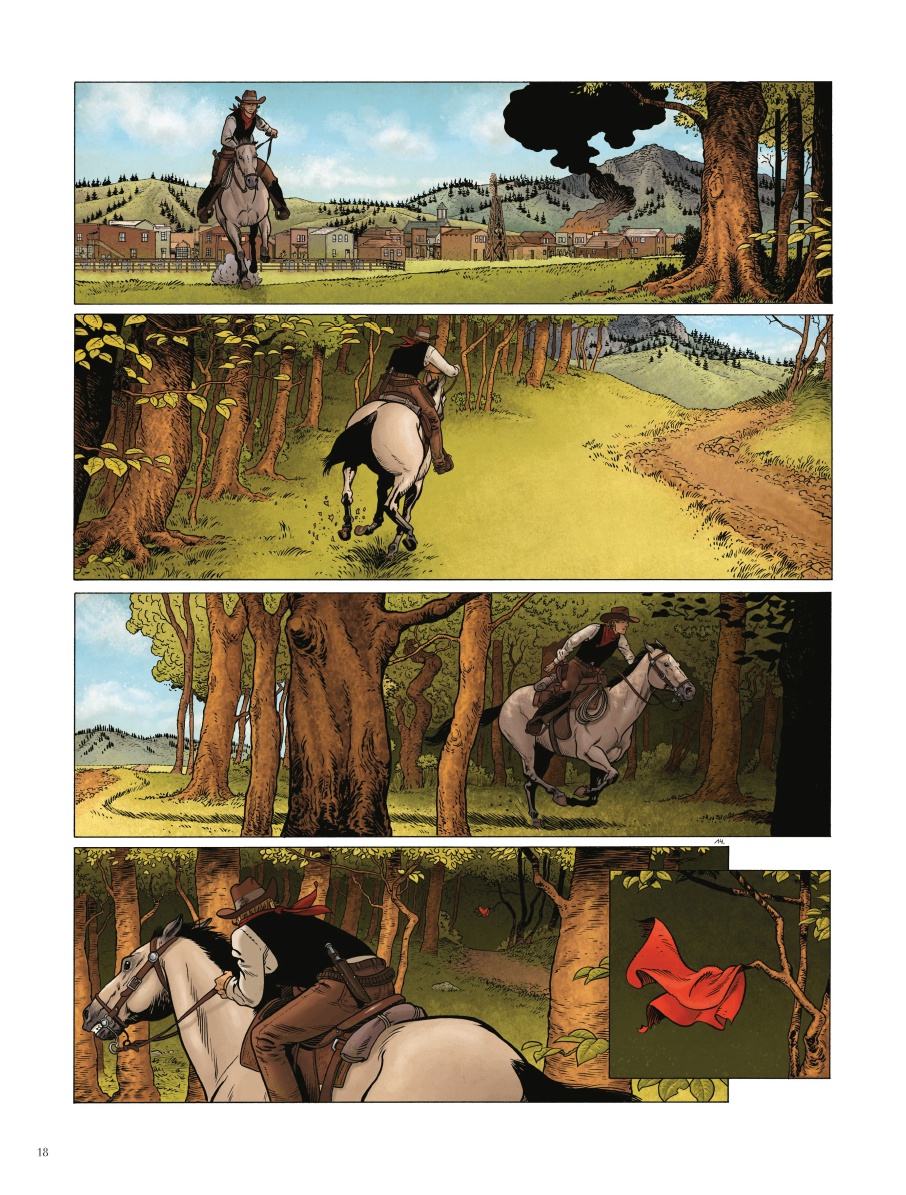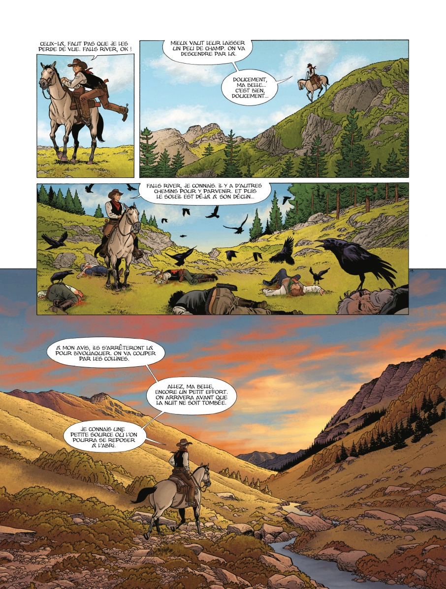 Clark a cependant changé de vie. Il a rompu avec sa bande de hors-la-loi sanguinaires qui, par représailles, ont tué sa fiancée, et il est bien décidé à leur faire payer ce meurtre. Eux non plus ne l’ont pas oublié. Considéré comme un traitre à leur cause, ils veulent également l’abattre. C’est ainsi que commence l’album, non loin d’un mystérieux fortin féminin, près de Falls River.