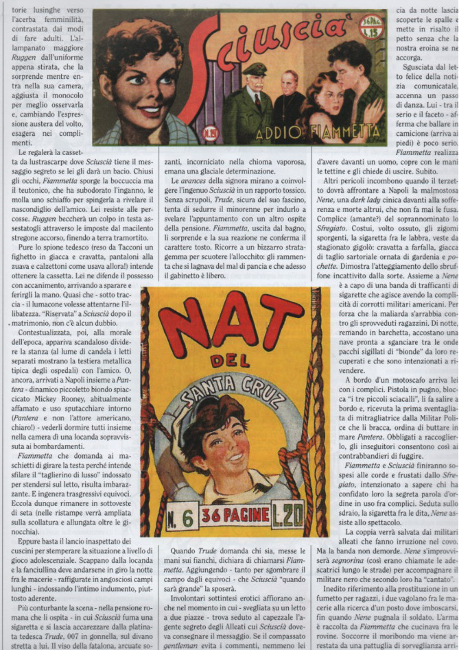 Claudio Dell’Orso évoque avec nostalgie « Fiammetta » et « Sciuscia » : une héroïne et un héros de l’immédiat après-guerre, campéspar Ferdinando Tacconi, dont les aventures ont été traduites avec succès en France.