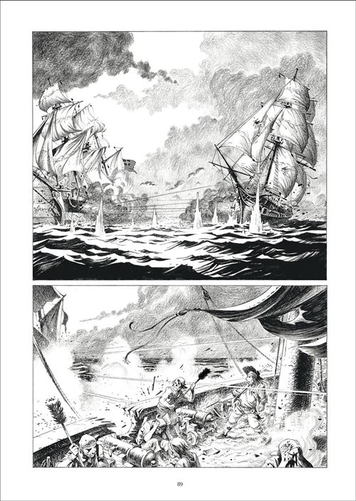 Suivant les errements d’un capitaine pirate sans scrupule et au caractère bien trempé, ce one shot de 116 pages permet essentiellement à Riff Reb’s de s’amuser avec cet univers de gueules cassées et de fourberies. Un monde de crapules et de bassesses où, finalement, le mal est devenu un mode de vie. Une existence miséreuse adoptée par un équipage de racailles qui survivent tant bien que mal à bord, pillant le premier navire qui leur passe sous la main, se gorgeant d’alcool, s’exposant à priori aux pires représailles…
