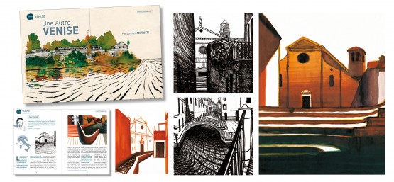Lorenzo Mattotti ouvre le bal avec ses dessins d’« Une autre Venise », expliquant dans l’interview sa façon « d’explorer la géométrie secrète de l’espace », l’objectif étant pour lui « de sortir des clichés touristiques pour révéler une Venise inédite ». Mattotti insiste également sur sa nécessité de « préserver un lien narratif et figuratif » dans ses illustrations avec toujours, dit-il, l’idée de « cultiver l’imaginaire des autres » !
