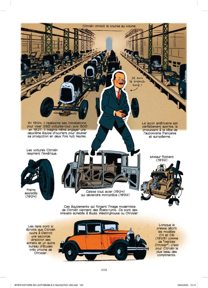 La caisse, la bagnole, la guimbarde ! Racontée par trois passionnés — l’historien Jean-Louis Loubet, le scénariste Laurent-Frédéric Bollée et le dessinateur Christophe Merlin —, cette fresque monumentale de près de 400 pages retrace l’épopée automobile sous toutes ses formes, depuis l’improbable « fardier » de Cugnot (1770) jusqu’à la voiture autonome de demain. Au-delà de la technique, c’est une histoire humaine et sociale qui s’y déploie, dans une révolution des transports qui continue de bouleverser les époques : symbole de liberté, moteur économique, enjeu nationaliste ou sportif, mais aussi déclencheur de mutations sociétales et de défis environnementaux majeurs. Un road-book érudit, dont le dessin donne méticuleusement vie tant à l’histoire des modèles, firmes, marques, ingénieurs et concepteurs (de Renault à Volkswagen en passant par Ford, Fiat ou Toyota) qu’aux anecdotes les plus singulières. Sans réserver pour autant sa lecture aux seuls passionnés de mécanique !