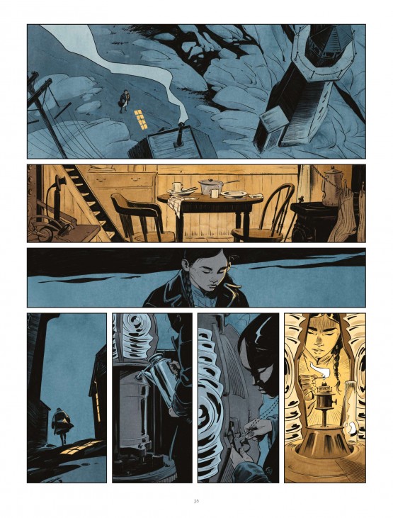 Afin de se documenter, les auteurs se sont réellement rendus à Peggy’s Cove, sur la côte Est de la Nouvelle-Écosse. Comme l’explique Mikaël, « [sur place], on comprend très vite que ces villages se sont constitués à partir d’une poignée de personnes, par agglomération de vagues successives de petites communautés aux origines bigarrés ». L’analogie avec la mythologie du western devient plus évidente, selon Tristan Roulot : « Ces villages étaient animés d’un esprit pionnier, en premier lieu parce que ces gens s’associaient pour des raisons de survie. » Inspiré par les intrigues croisées et les ambiances pesantes de la série « Peaky Blinders » (2013-2022) et des films des frères Coen, « Sœurs des vagues » est un one-shot de 112 pages non manichéen, qui a toute sa place dans la collection Signé du Lombard. Pour les collectionneurs, signalons la parution conjointe d’une édition augmentée pour la librairie Bulle Le Mans (600 exemplaires de 120 pages avec couverture alternative, dossier additionnel [huit pages] et ex-libris exclusif).