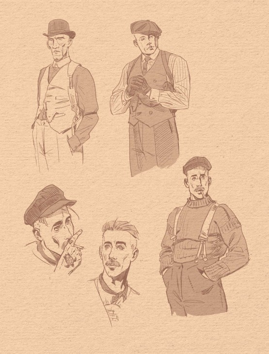 Se connaissant depuis plusieurs années, résidant tous deux au Québec, Tristan Roulot et Mikaël n’avaient cependant encore jamais travaillé ensemble. Réunis pour ce huis-clos au bout du monde, ils évoquent très directement la condition de femmes réduites à une longue attente et autant d’incertitudes : si la pêche à la morue n’est pas fructueuse, elles ne pourront nourrir leurs enfants… C’est cette existence, rude et austère, qui va en pousser certaines à chercher d’autres moyens de subsistance, afin de prendre leur destin en mains. Dans les années 1910, les femmes des petites communautés littorales devaient essentiellement s’occuper de l’éducation des enfants, des tâches ménagères, des parcelles agricoles et de petits élevages, ainsi que du séchage des poissons et de la réparation des cordages. Beaucoup œuvraient comme domestiques, servantes, blanchisseuses, couturières ou gardiennes d’enfants, catégories professionnelles bien identifiées dans les nomenclatures des recensements effectués durant cette décennie.
