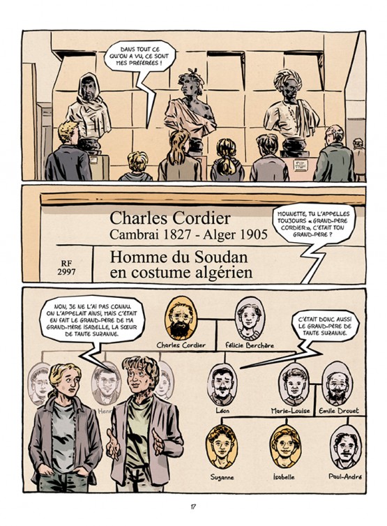 Walter contacte sa famille et, au fil des réponses, se construit, se reconstruit, un arbre généalogique d’artistes dans des domaines fort différents : le grand-père de Suzanne, Charles Cordier, sculpteur, dont on découvre notamment le buste étonnant d’un ancien esclave soudanais affranchi ; le fils de Charles Cordier, Henri, également sculpteur renommé…