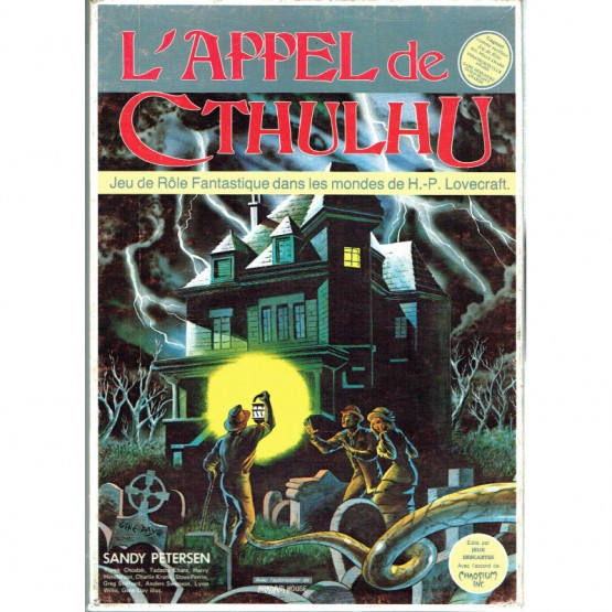 Un classique : visuel du coffret de la première édition française du JDR « L'Appel de Cthulhu » (Jeux Descartes, 1984).