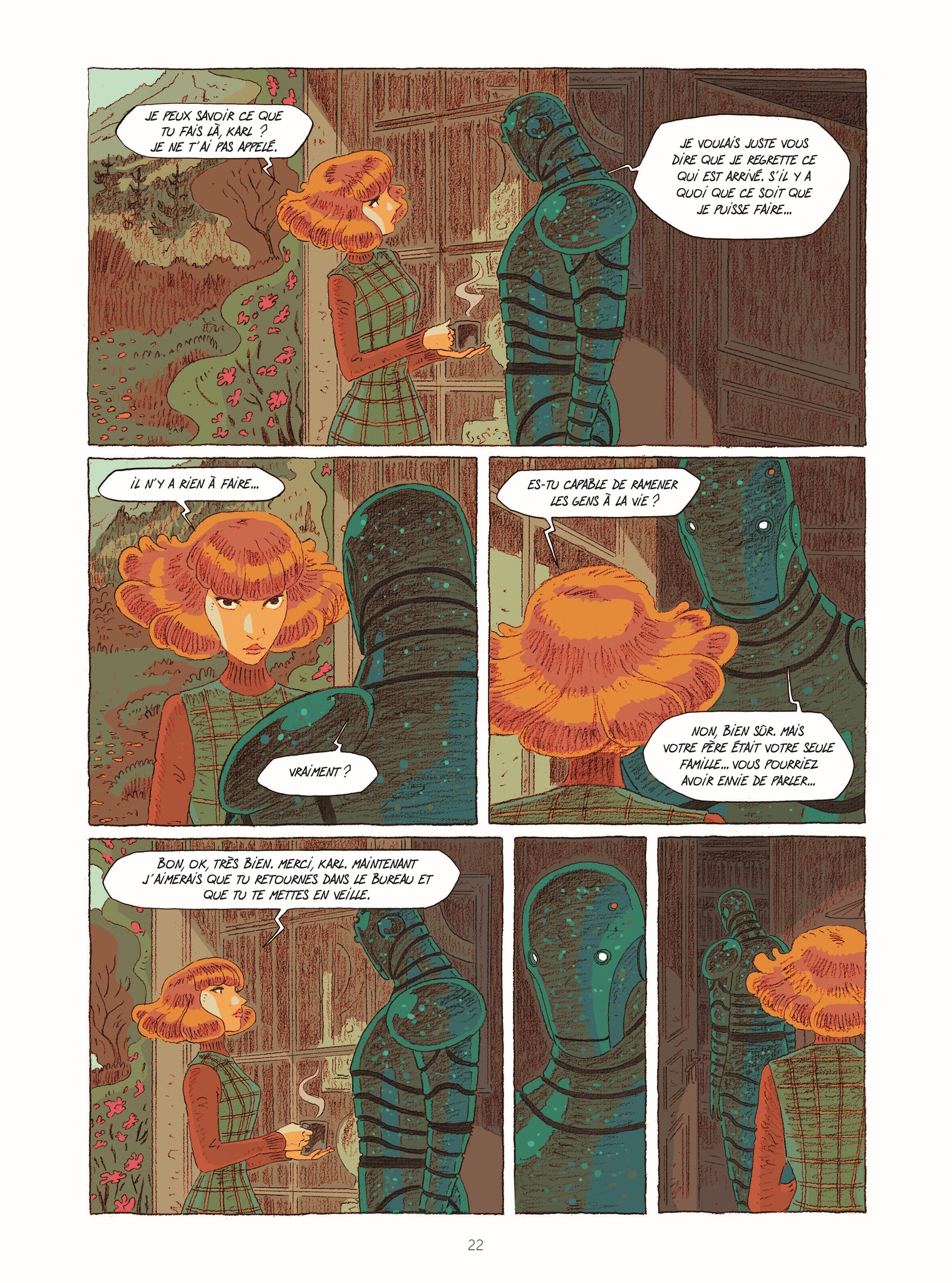 Avec sa sensibilité et son trait aussi délicat que maîtrisé, et en seulement une quinzaine de titres — dont certains en plusieurs tomes — réalisés depuis 1999, Cyril Bonin (1) s’est bâti, une solide réputation dans le monde du 9e art : enchaînant les albums émouvants, mais qui nous interpellent également sur la nature humaine. L’histoire de ce Karl, robot dévoué qui va provoquer un accident de la route pour éviter une biche et, en conséquence, le décès de son riche et fantasque banquier de maître, risque de hanter pendant longtemps nos réflexions sur les rapports entre l’homme et la technologie…
