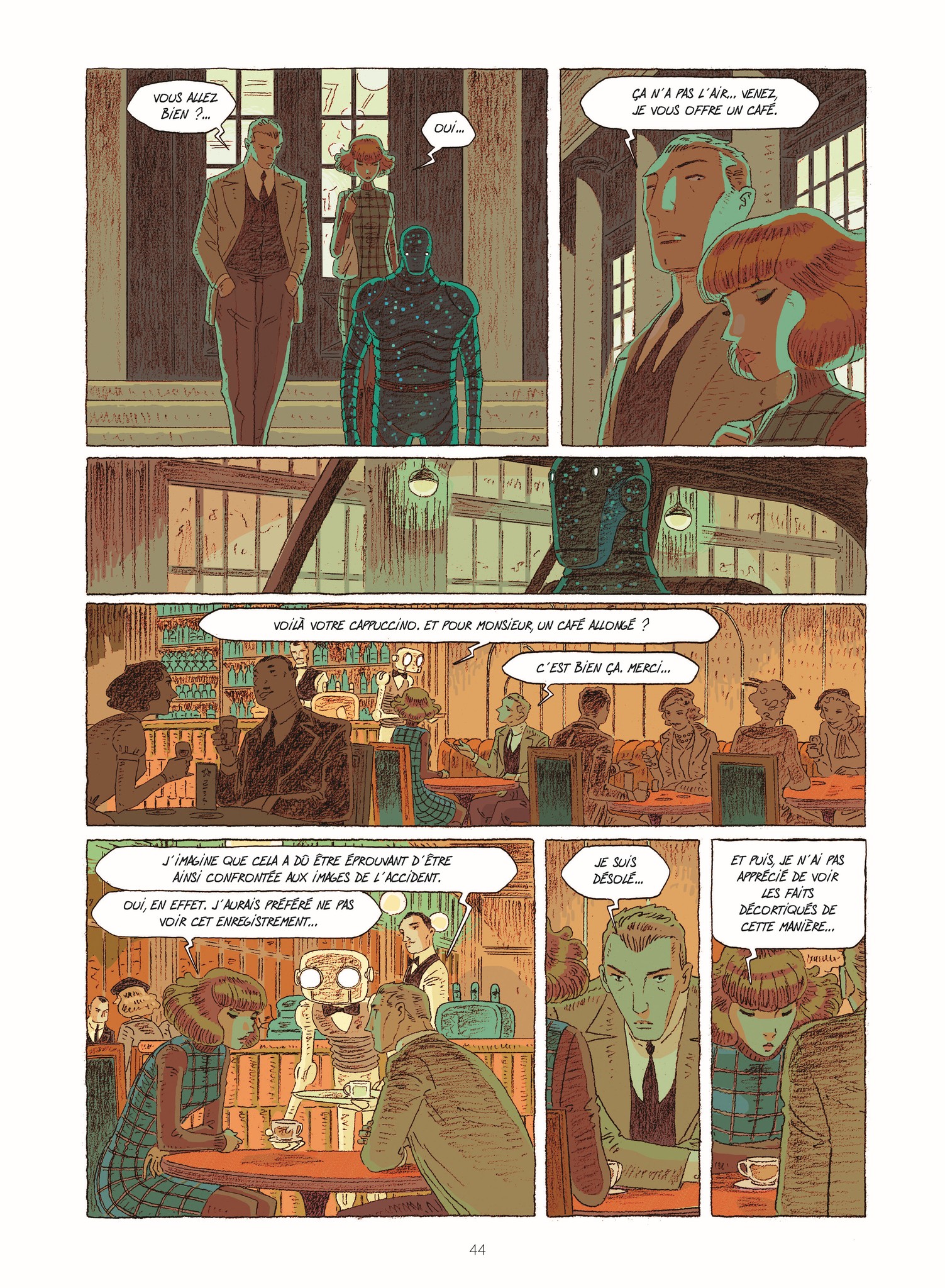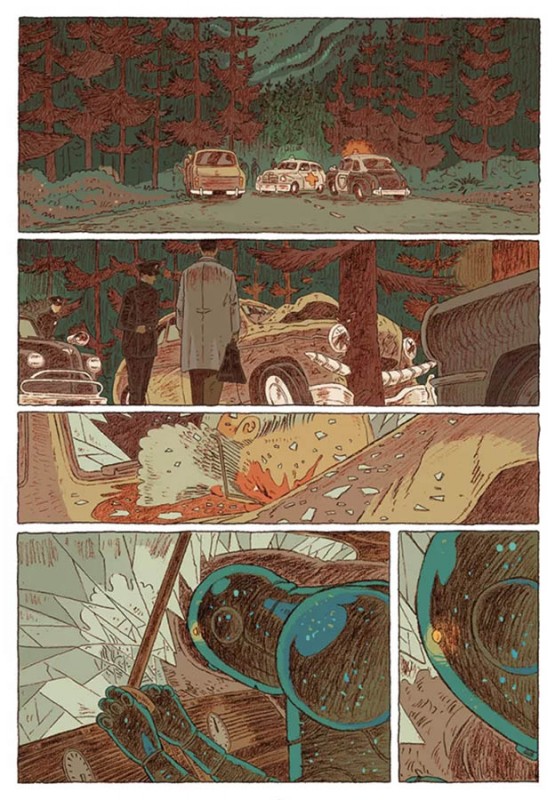 L’originale ambiance années cinquante, mise en valeur par le subtil dessin et les douces couleurs pastel de Cyril Bonin, permet de donner un aspect intemporel et bienveillant à ce sensible et complexe récit rétrofuturiste, proposé aux éditions Sarbacane (2) : véritable hommage à la nature, à la vie, et au temps qui passe. Mais ce qui est encore plus flagrant, c’est l’excellence de sa narration tranquille et l’art de son découpage (une constance chez cet auteur) : comme l’action prend son temps, on savoure d’autant plus les dialogues ciselés, la mise en scène contemplative, et la beauté des images…