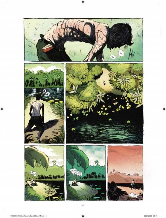 Après avoir attendu pendant des semaines, le voyage commence en effet en septembre 1949. Le « western guyanais » est lancé, intrépide, affolant… Au début, Maufrais est évidemment heureux de découvrir ce que la forêt amazonienne cache de secrets et de beauté, le tout superbement rendu par le graphisme de Lucas Landais et les couleurs incroyablement réussies, souvent très créatives, d’Elisa Cellier, dont le nom mériterait vraiment d’apparaitre en couverture. Mais, peu à peu, des réalités plus négatives entachent sa vision idéalisée de ces contrées.