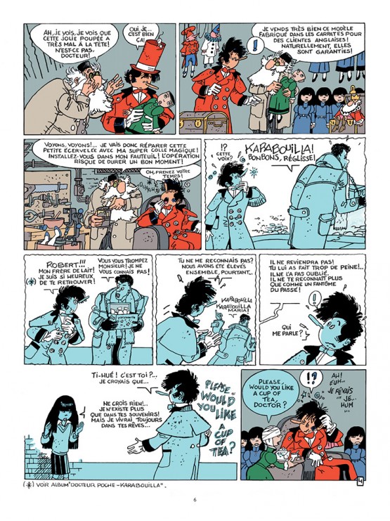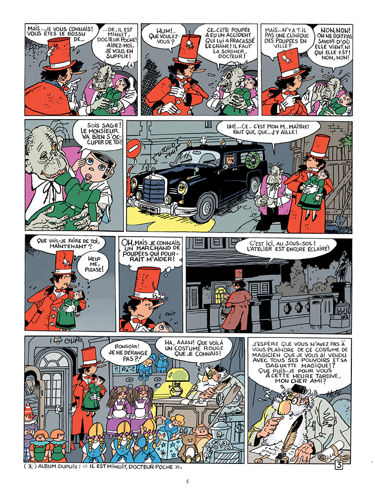 Notons que cette reprise (chez l’éditeur belge Nicolas Anspach) n’est pas le premier retour de ce bienveillant personnage ! En effet, après son départ de l’hebdomadaire de Marcinelle en mai 1989 — où furent publiés un peu plus que l’équivalent de neuf albums chez Dupuis, le tout compilé dans trois belles intégrales chez cet éditeur —, l’« empathologue » magicien revient d’abord en 1995, pendant cinq épisodes édités directement dans des livres s’adressant à un public plus enfantin que la série d’origine, chez Casterman, jusqu’en 2000.