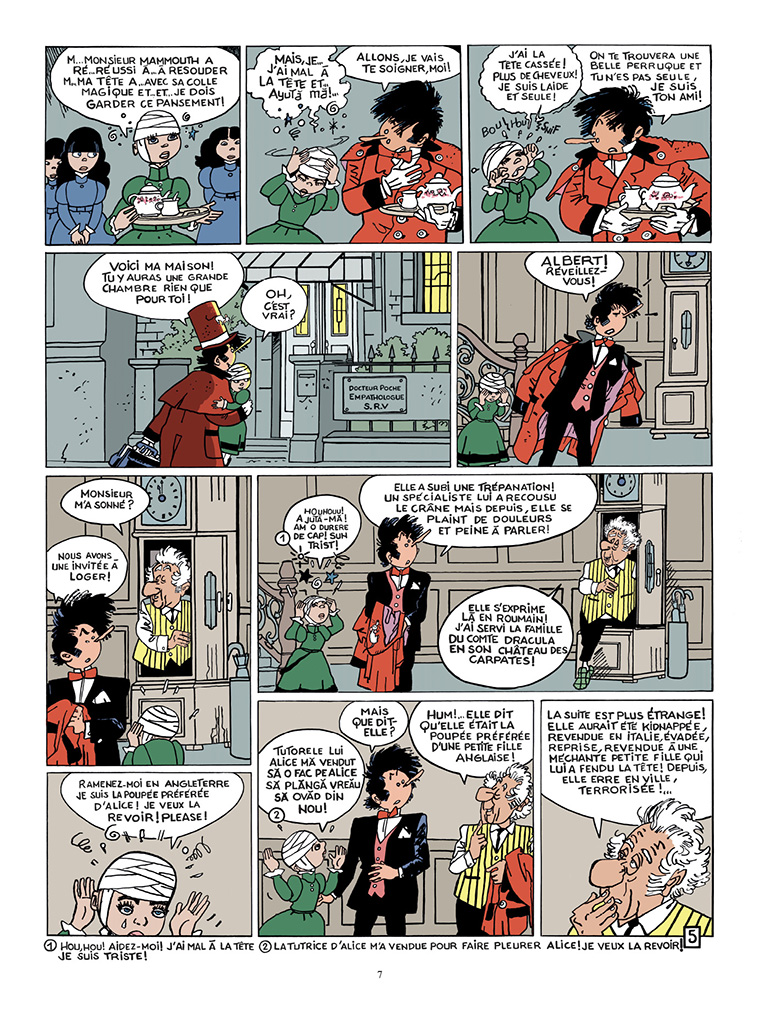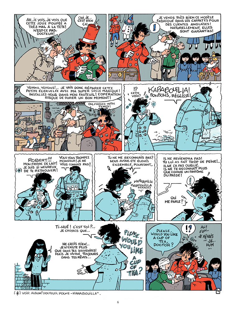 C’est justement l’une de ses vieilles connaissances qui lui confie une poupée vivante en triste état : un accident lui ayant fracassé le crâne. Un marchand spécialisé de ses amis va alors réparer la petite écervelée en lui ressoudant sa tête, grâce à sa colle magique. Dès lors, elle ne souhaite que retourner en Angleterre et retrouver Alice : sa jeune propriétaire…