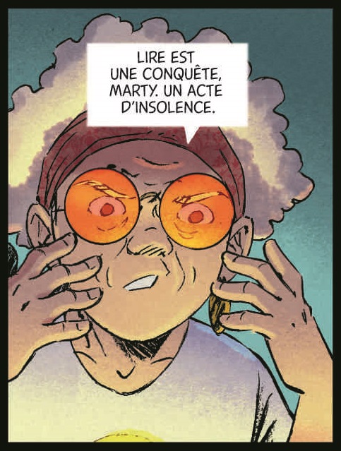 2055, le monde a bien changé, mais le jeune Marty ne connaît pas celui d’avant, car il a juste 15 ans. Il associe les jours de la semaine à des couleurs, mais il a admis que la majorité des gens ne voient pas leur quotidien ainsi, car on lui a répété sans cesse qu’il était différent des autres. Bizarrement, les livres ont disparu depuis La Grande Bascule : un événement extraordinaire qui a transformé toute la société. Depuis, les rapports semblent pacifiés entre les personnes. Étrangement, elles semblent avoir oublié une partie de leur passé, car elles n’ont pas accès aux livres qui apparaissent comme un concept saugrenu, mystérieux, et même un peu inquiétant. Marty, comme tous ses camarades, doutent donc du pouvoir des histoires. Jusqu’au jour où sa grand-mère lui offre une bande dessinée avec un récit qui va bouleverser sa vie.