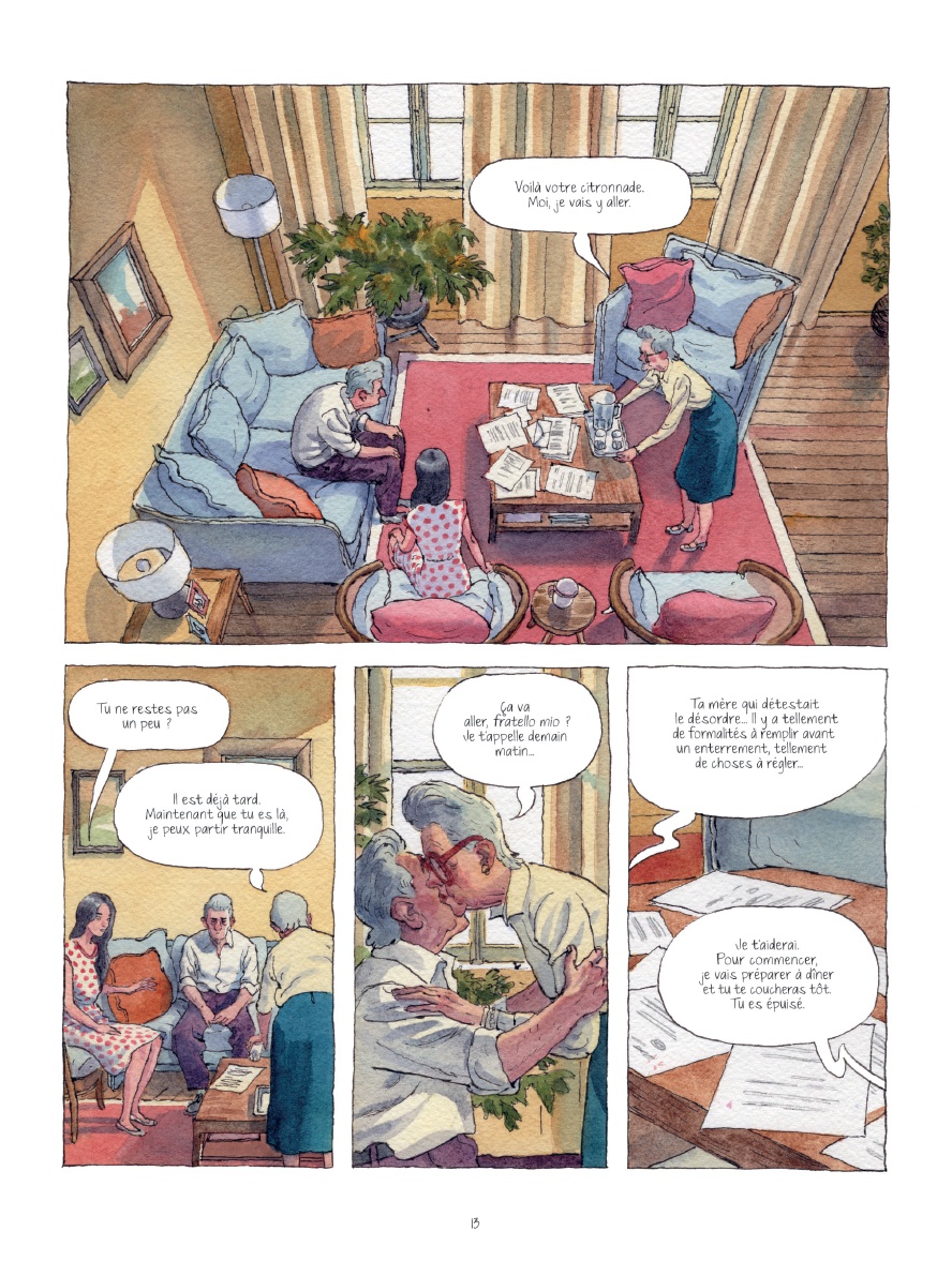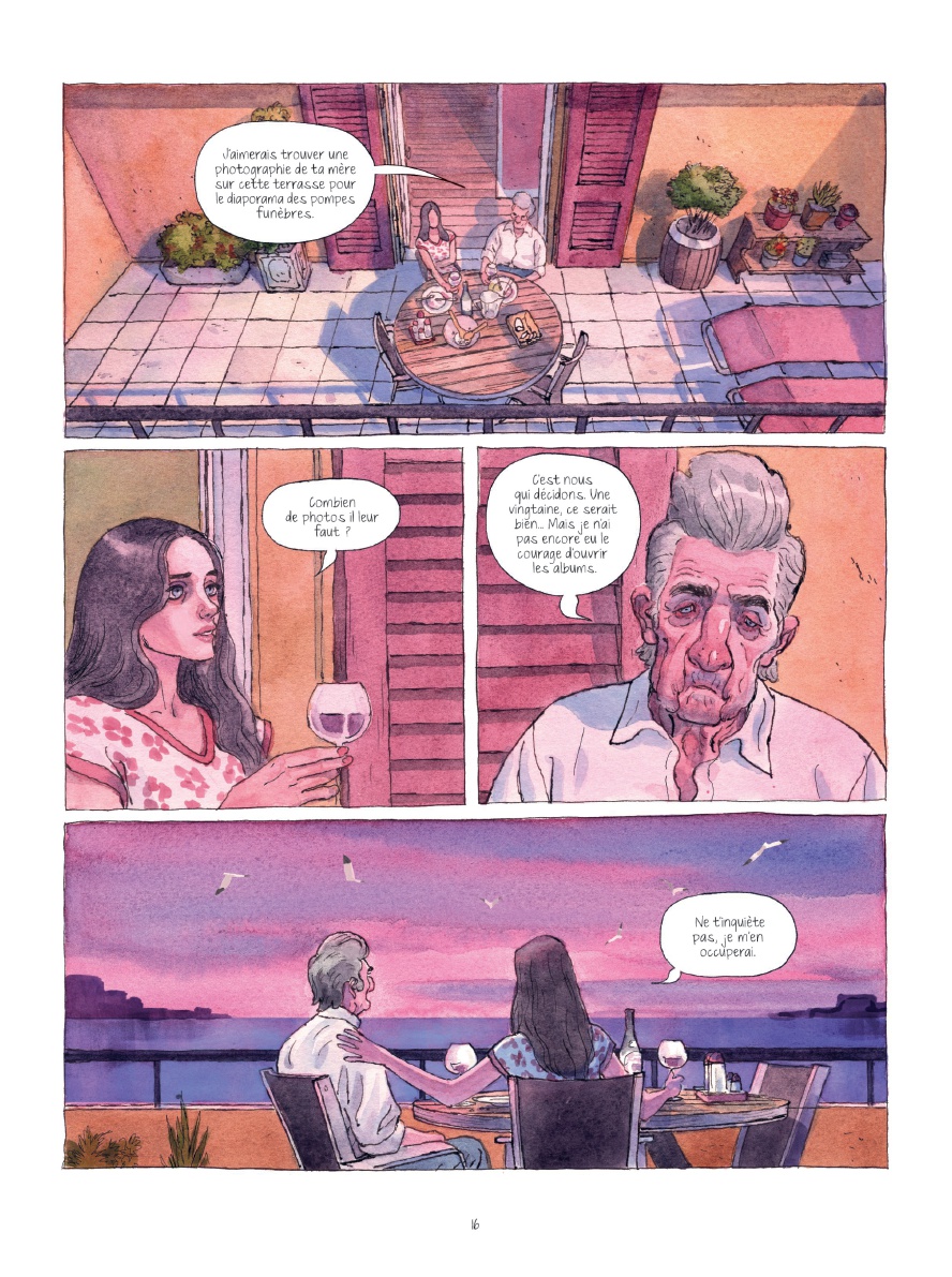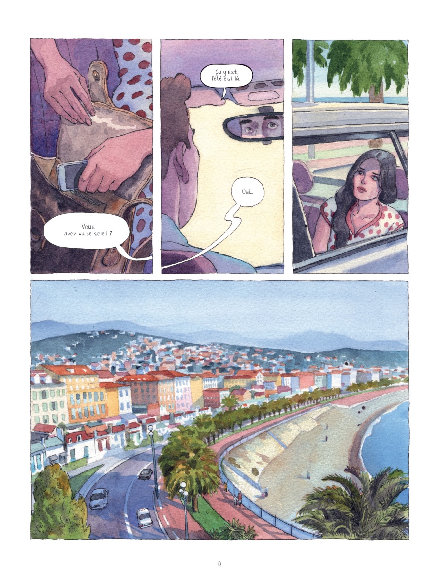 Cette exploration aussi intimiste que délicate des premiers émois est sublimée par les encres et aquarelles, chaudes et colorées, de Thomas Campi, lequel fut l’un des illustrateurs des enquêtes de la criminologue Julia pour les éditions Bonelli et qui poursuit actuellement sa fructueuse collaboration avec le scénariste belge Vincent Zabus, chez Dupuis ou au Lombard. En effet, son élégant trait semi-réaliste, d’une grande finesse, participe entièrement à la narration, installant une atmosphère mélancolique et presque suspendue, baignée par la lumière de la Méditerranée…