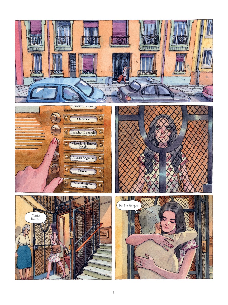 Tout juste auréolées du Prix René Goscinny du jeune scénariste (pour « Les Cheveux d’Édith », également chez Dargaud, mais avec Dawid au dessin), les prolifiques autrices en ouvrages jeunesse ou romans young adult que sont Fabienne Blanchut et Catherine Locandro nous racontent, dans ce qui n’est que leur deuxième bande dessinée, comment, entre silences et non-dits, a basculé la vie de Frédérique, alors qu’elle avait à peine 13 ans. Basé sur leurs trajectoires personnelles, cet attachant et délicat récit intime, somptueusement mis en images par l’Italien Thomas Campi, nous amène en Corse-du-Sud. À l’occasion de vacances en famille, pendant un été bien particulier de 1985, la fillette comprend qu’elle grandit et qu’elle est différente, car elle prend doucement conscience de l’attirance qu’elle développe pour une serveuse du restaurant du village…