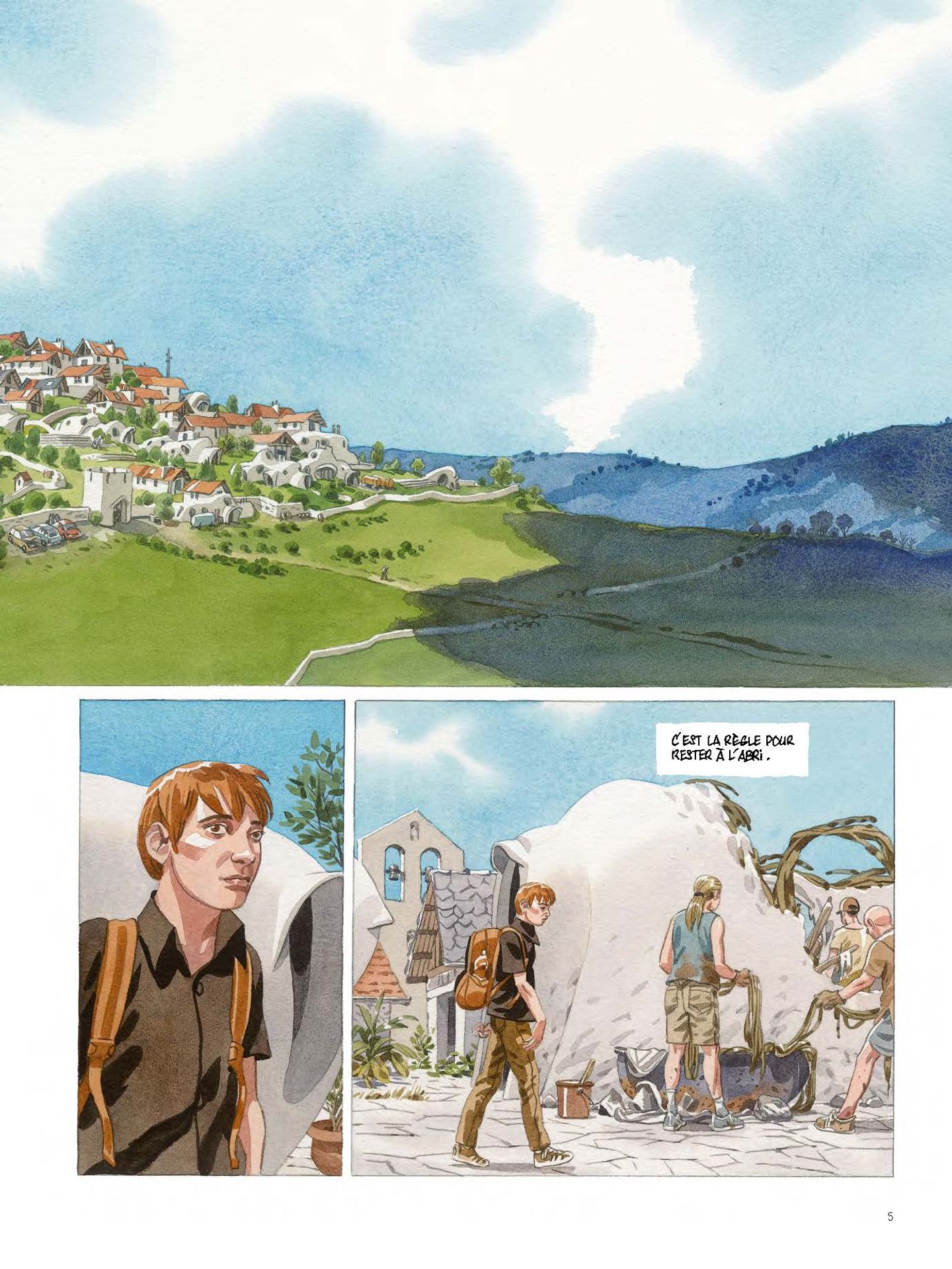 Cet album copieux présente le cinquième et avant-dernier chapitre du passionnant récit post-apocalyptique proposé depuis 2015 par Jean-Christophe Chauzy. Nous retrouvons les protagonistes de cette histoire — avec l’instinct de vie chevillé au corps — quelques années après la secousse sismique qui a détruit le monde et plus particulièrement le sud de la France. Une lutte pour la survie au quotidien, avec pour décors les paysages grandioses des Pyrénées orientales. Quelques années sont passé depuis la catastrophe climatique qui a bouleversé le monde. Les survivants, réfugiés en communautés, combattent pillards, fous de dieu, épidémies…