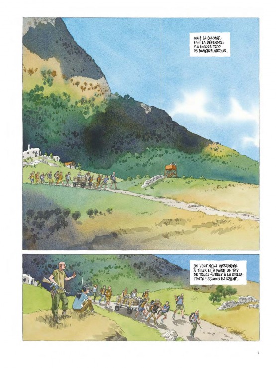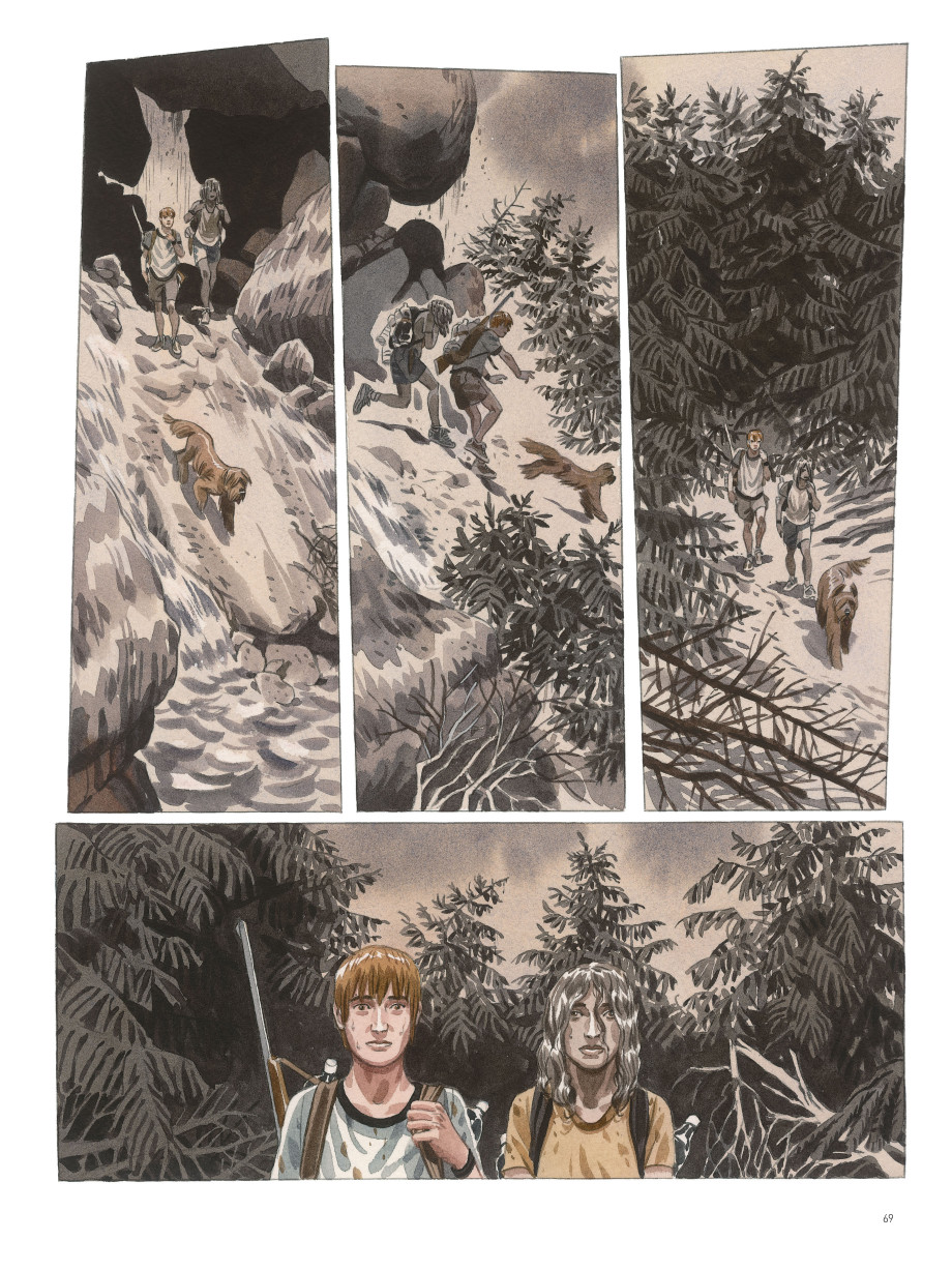 La mise en couleur directe,réalisée à l’aquarelle par le dessinateur sur ses originaux, ajoute une note d’originalité et de sensualité au scénario inspiré par les grandes sagas postapocalyptiques. Malgré une thématique particulièrement sombre, cette série — qui, une fois bouclée, devrait dépasser les 650 pages — se veut optimiste sur l’avenir de l’humanité.