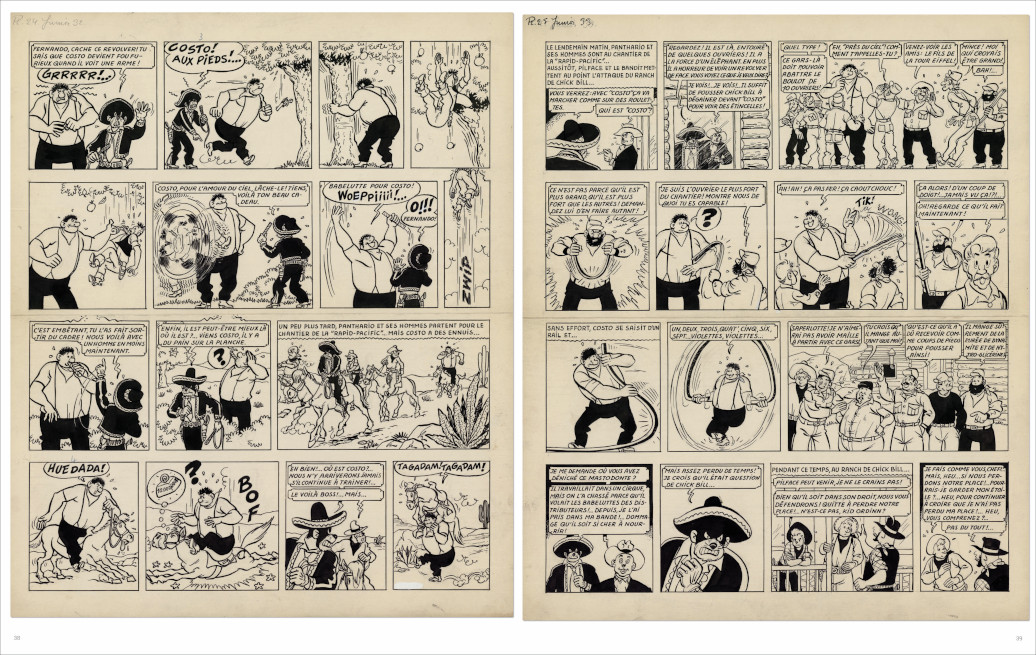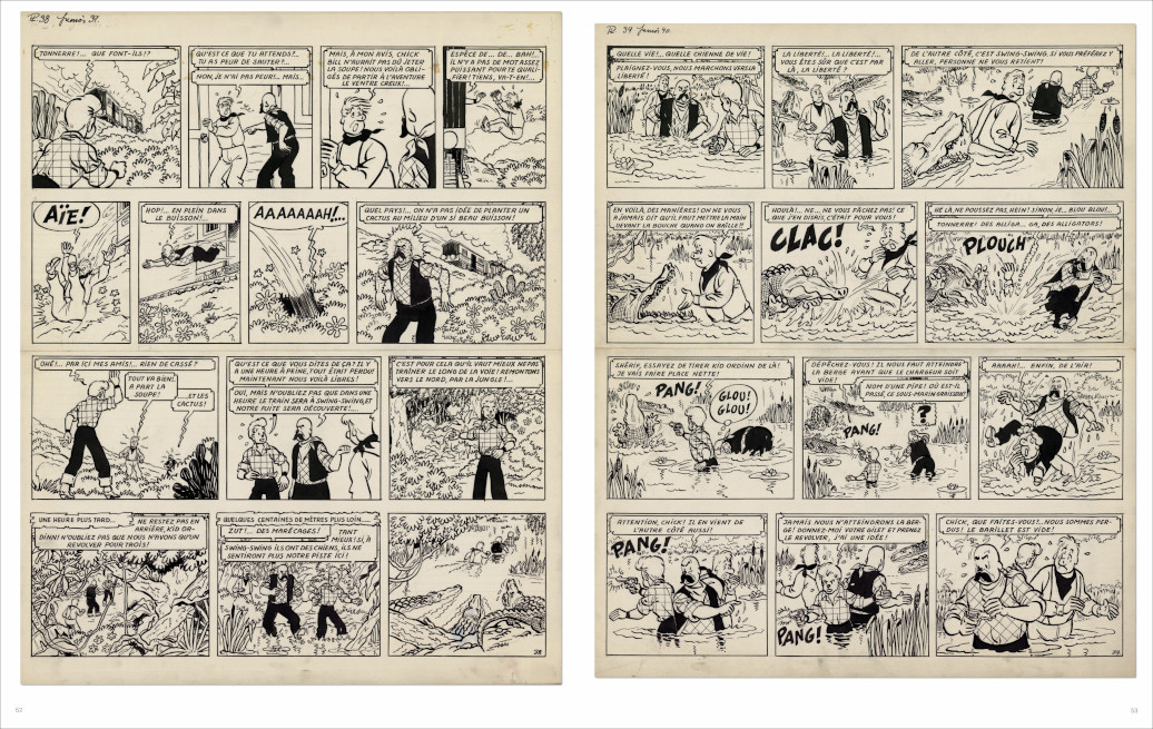 Les planches originales que nous pouvons admirer sans problème, grâce à une reliure dite « fil apparent » qui permet une ouverture à plat, rendent palpable l’expérience de la création : le grain du papier, les éventuels repentirs graphiques ou autres, les petites irrégularités du geste… Encore une réalisation impeccable qui devrait satisfaire les amateurs !