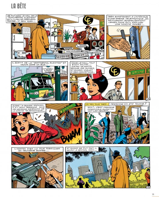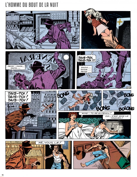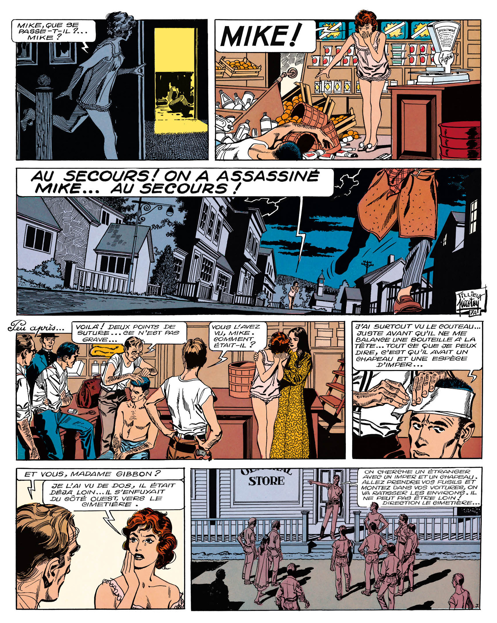 Ainsi, neuf des 11 épisodes contenus dans cet ouvrage — lesquels ont été publiés dans les albums de la collection originale chez Dupuis, aux n° 3 à 6, 10 et 11 — sont de sa main (et du meilleur cru !), notamment « L’Homme du bout de la nuit » (1974) ou « Il était deux fois dans l’ouest » (1978) : le dernier scénarisé par Tillieux avant son décès tragique. Signalons, aussi, que certaines des affaires résolues par cet officier de police au calme imperturbable, assisté par son confrère Slim Sullivan, sont des adaptations sublimées d’anciennes histoires de sa série « Félix », à l’instar de « La Piste sanglante » (1974) et de « La Grotte aux crabes » (1975).