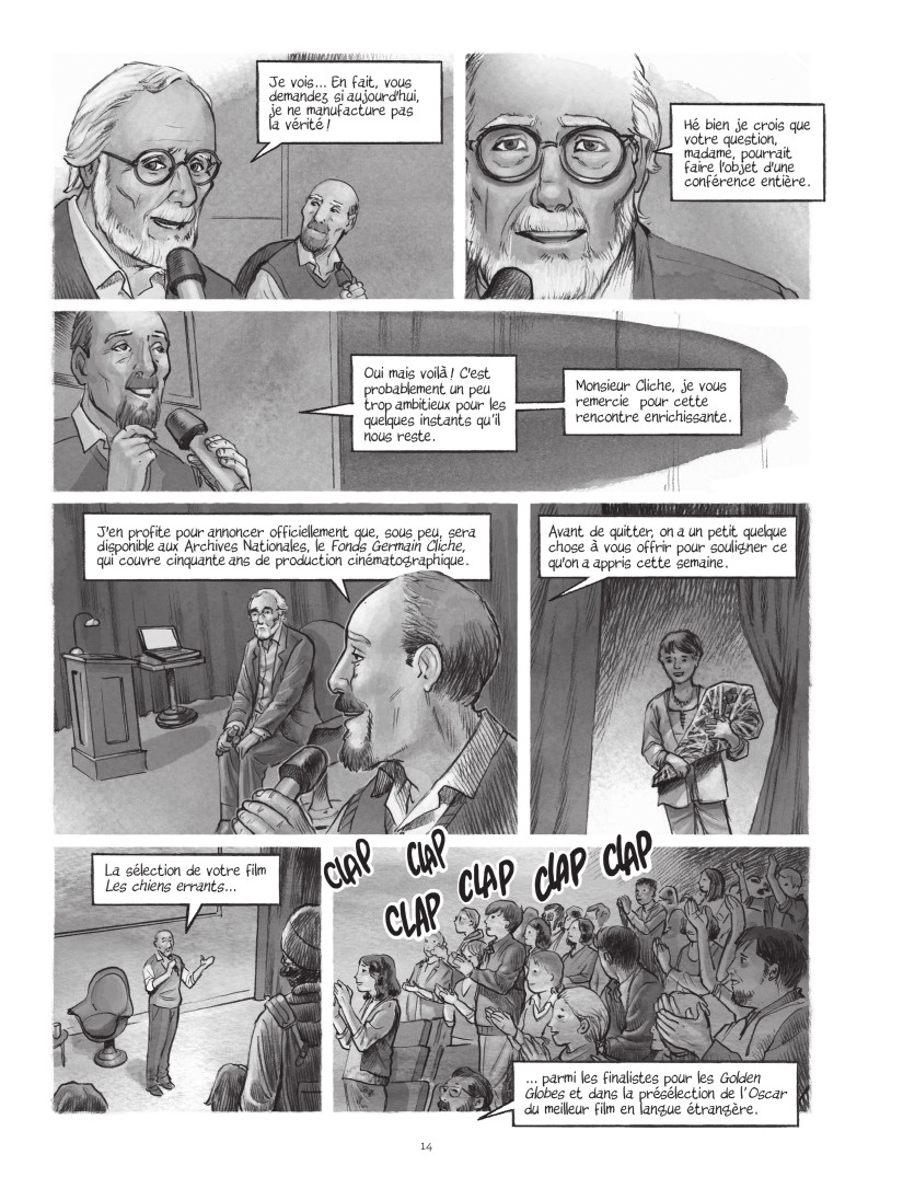 À 80 ans, Germain Cliche est donc un monument du septième art. Invité régulièrement sur les plateaux de télévision, il donne aussi de nombreuses conférences sur le cinéma, répondant avec honnêteté et humilité aux questions souvent indiscrètes du public ou des journalistes. Ce qui ne l’empêche pas de s’occuper, avec patience et compassion, de sa femme qui souffre d’Alzheimer ou de s’impliquer, avec entrain et abnégation, dans des organismes de charité. Finalement, ce cinéaste de génie — et de renommée internationale — semble être une très bonne personne, à la fois enthousiaste et engagée…