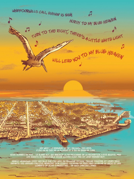 À noter, en fin d’album, un dossier joliment illustré, signé par les auteurs, expliquant d’où est venue cette histoire et qui en dit un peu plus sur les raisons du séjour d’Hemingway à Key West, de 1931 à 1939.