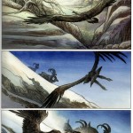 C’est une vallée très reculée, quelque part au fin fond d’un pays froid qui pourrait être l’Alaska ou la Sibérie. Presque personne n’y vit, hormis la faune sauvage et un peuple autochtone discret. Hélas, le sous-sol regorge de matières premières et bientôt les affairistes déferlent, pressés d’y construire une ville, des mines, un barrage… Les premières exactions surviennent ; personne ne doit faire obstacle au « progrès ». Mais il y a pourtant un témoin silencieux à cet immense désordre : Kraa, un jeune aigle très puissant qui a appris la survie, maître secret de la vallée. Avec Yuma, un adolescent indien dont on vient de massacrer la famille, et avec lequel il a développé un lien d’essence chamanique, Kraa, dont la voix off sert de fil rouge au récit, entre en résistance… Un deuxième tome remarquablement dessiné, dans la lignée du précédent : c’est-à-dire détonnant, dépaysant et inquiétant…