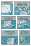Enfin, le troisième chapitre se penche sur notre monde d’aujourd’hui, après le déclenchement de cette crise de 2008, induisant les répercussions de cette évolution du néolibéralisme et de ce – car ce n’est peut-être pas le dernier si nos sociétés ne changent pas en profondeur – paroxysme inhérent au phénomène. Après un deuxième chapitre plutôt ardu, on revient ici à une analyse plus fluide qui rend compte de la situation dans laquelle nous sommes, élargissant le propos à des paramètres sociaux, éthiques, psychologiques, humains. Car qu’on le veuille ou non, ce satané (et je suis poli) néolibéralisme a malheureusement transformé le visage de notre société actuelle, parfois dans ses fondements les plus essentiels comme l’éducation, la santé, la relation à l’autre et au monde, et, gros mot pour Rand, l’aide sociale. Ici, Cunningham démontre comment l’évolution exponentielle du néolibéralisme et ses conséquences – dont évidemment la crise de 2008 – ont fortement impacter notre inconscient collectif et notre rapport à l’humain, du citoyen lambda aux plus hautes sphères de la politique. Inégalités croissantes, repli sur soi-même ou protectionnisme, peurs ancestrales réveillées : tout est là pour offrir un terreau de choix à la montée du nationalisme, du populisme, et donc de groupuscules ou de partis politiques extrémistes. Étant anglophone et son sujet portant essentiellement sur les États-Unis, Cunningham parle naturellement du Tea Party et de l’UKIP, mais il ne faut pas aller très loin pour y rattacher d’autres partis extrémistes émergents ou prenant une inquiétante ampleur en Europe, dont le Front National en France, bien sûr. C’est le délabrement et l’effondrement d’une pensée forte et humaniste que constate malheureusement et justement l’auteur, une résultante qui pourrait bien plonger nos sociétés occidentales dans des marasmes et des terreurs que d’aucuns pensent impossibles mais qui nous pendent dangereusement au nez. Conservateurs et progressistes, gauche et droite, Cunningham ose faire un constat dérangeant – pour les conservateurs et la droite – sur les différences fondamentales entre les valeurs prônées par les uns et les autres. Un courage que l’on se doit de saluer à l’heure où la fainéantise intellectuelle et la simplification des esprits mènent à mettre tout le monde dans le même panier sans faire de différence entre les partis politiques, et en même temps un appel au réveil des consciences de toutes et tous pour ne pas oublier et continuer de faire vivre les fondamentaux des idéaux progressistes. Bref, en résumé, voilà un auteur et un ouvrage qui s’avèrent plus que nécessaires aujourd’hui, et l’on peut être fiers que ce soit par la bande dessinée que s’exprime cette voix humaniste. Que l’on ne vienne plus jamais me dire que la bande dessinée est un truc pour ceux qui ne savent pas lire un « vrai livre ». Avec un auteur comme Cunningham, bien des théoriciens et spécialistes de l’écrit sans images devraient faire profil bas. Euh… Darryl ? Tu voudrais pas devenir président de la République de la Terre ? Je dormirais un peu mieux, moi…