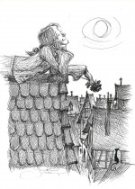 Dans le monde fictif de « Célestin Gobe-la-Lune » (où aucun lieu, pas même la capitale du royaume ou le héros, ne porte de nom), tout évoque le 18e siècle sans le dire : la pauvreté du bas peuple, les privilèges de la noblesse, l’aveuglement de la royauté (qui se disperse en jeux et concours futiles), les complots internes et, bien sûr, les prémices d’une révolution sanglante contre un souverain n’ayant pourtant rien d’un aveugle tyran de noble extraction… comme l’indique son prénom : Maurice 1er. À ceci près que ce siècle éclairé ne l’est pour ainsi dire que de manière lunaire : gentiment étourdi, propice au rêve et à la flânerie, au badinage amoureux digne de Marivaux (« La Double inconstance » en 1723 ; « Le Jeu de l’amour et du hasard » en 1730). Célestin lui-même, ayant étymologiquement trait au ciel, cherchera à échapper à sa pauvre condition terrestre en s’élevant spirituellement (par la poésie), socialement et physiquement, errant de fenêtres en toits en quête d’une énième dulcinée.