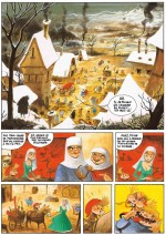 Le scénariste nous fait partager ses souvenirs du trouble charme qu’il y a à désobéir à ses parents et à croire à des chimères improbables quand on est enfant. L’album se clôt par des jeux autour d’une grande et belle image du village de Pieter. Tiens tiens, « Jeux d’enfants », c’est aussi le titre de l’un des plus célèbres tableaux de peintre Bruegel l’ancien auquel nous faisions référence plus tôt, Bruegel qui se prénommait… Pieter !