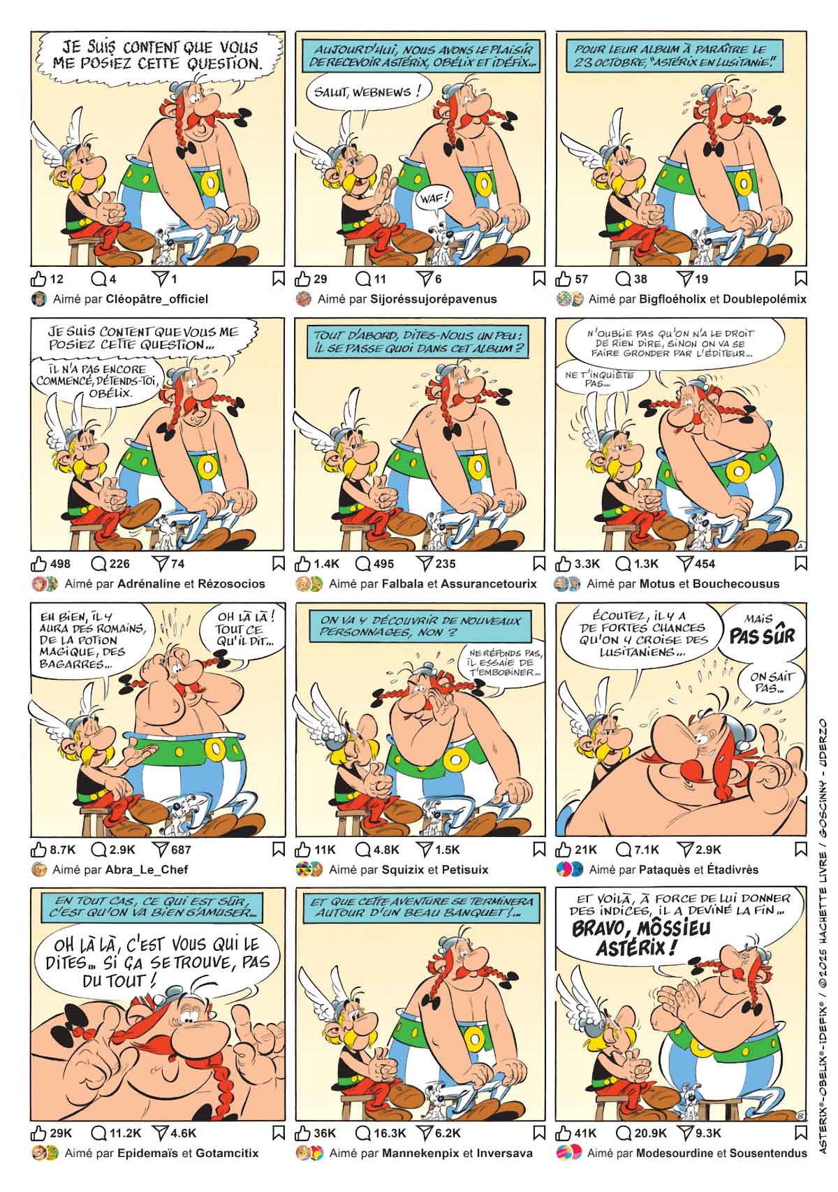 Comme souvent avec l’univers d’Astérix, actualité et chiffres donnent le tournis… Ayant célébré ses 65 ans en octobre 2024, le fier Gaulois a successivement fait son entrée au musée Grévin, été honoré par un timbre collector de La Poste, vu passer 200 000 visiteurs dans l’exposition immersive organisé aux Bassins des lumières de Bordeaux, permis que 200 000 repas soient servis par les Restos du cœur (bénéfices des ventes du livre de recettes « Les Banquets d’Astérix »), triomphé dans 190 pays grâce à la série animée « Le Combat des chefs », totalisé 2,84 millions de visiteurs au Parc Astérix… et 65 millions depuis l’ouverture du complexe touristique (avril 1989), lequel fêtait aussi ses 35 ans en 2024 ! Le tout sans compter la deuxième saison d’« Idéfix et les irréductibles » (diffusée dans 23 pays), le lancement d’un escape game en réalité virtuelle (« Astérix : mission potions ! »), un numéro hors-série de Géo (voir ci-dessous), ni les cinq millions d’exemplaires annoncés d’« Astérix en Lusitanie », titre traduit dans 19 langues et dialectes. Point de mélancolie donc : comme à chaque nouvel album, entre les versions classique et numérique, l’édition luxe (enrichie des crayonnés et d’une partie making-of) ou le coffret artbook, il devrait de nouveau y en avoir pour tous les goûts… Surtout si vous appréciez les saveurs et plats à la morue !