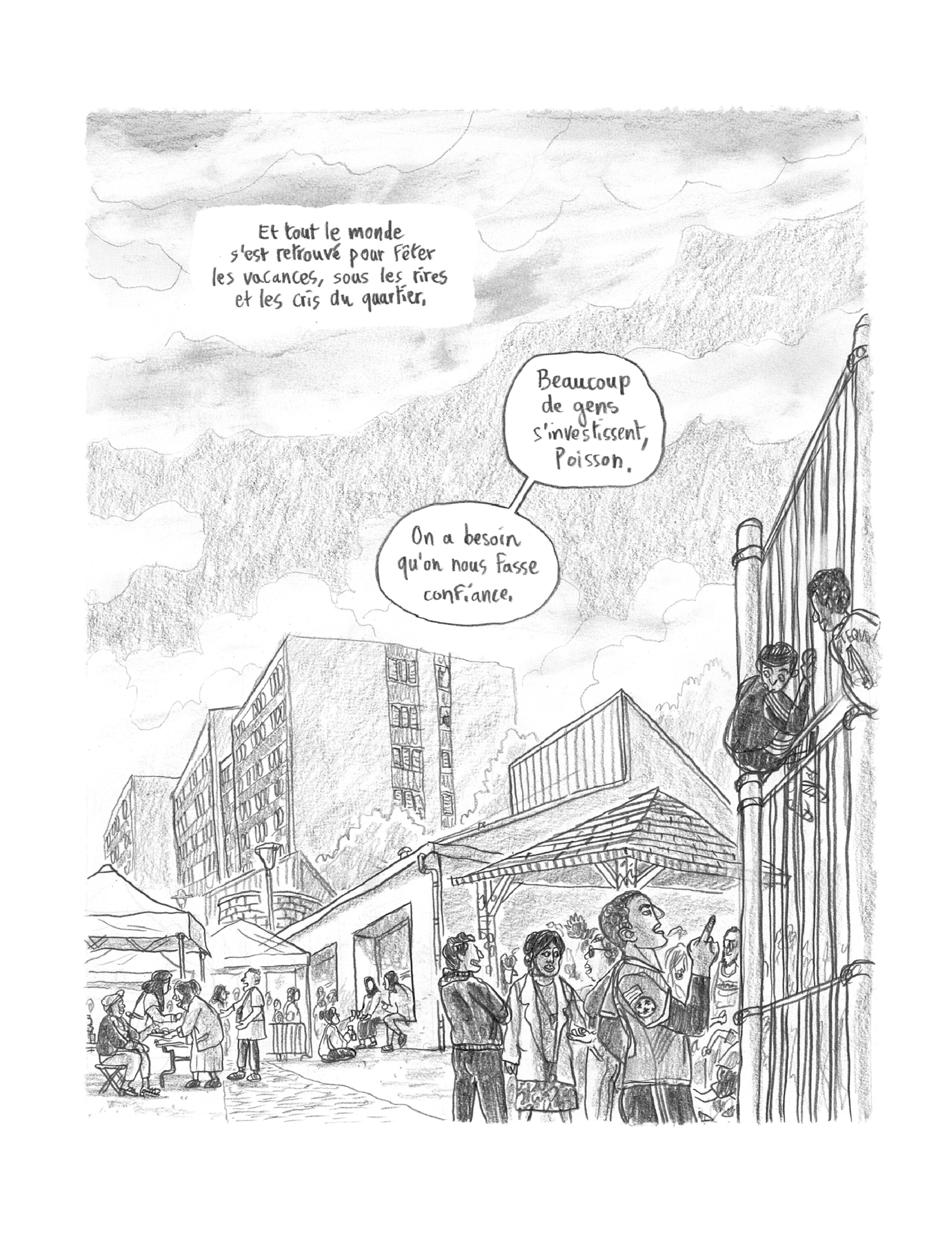 Le Poisson n’édulcore pas dans son récit les problèmes de ces quartiers : paupérisation, raréfaction des services publics, délinquance, vieillissement de la population, stigmatisation du regard extérieur, etc. Face à cela, depuis longtemps, des initiatives citoyennes se mettent en place avec une incroyable énergie, pour aider les habitants les plus précaires, fabriquer du lien social ou animer les quartiers lors d’événements grandement plébiscités par le public.