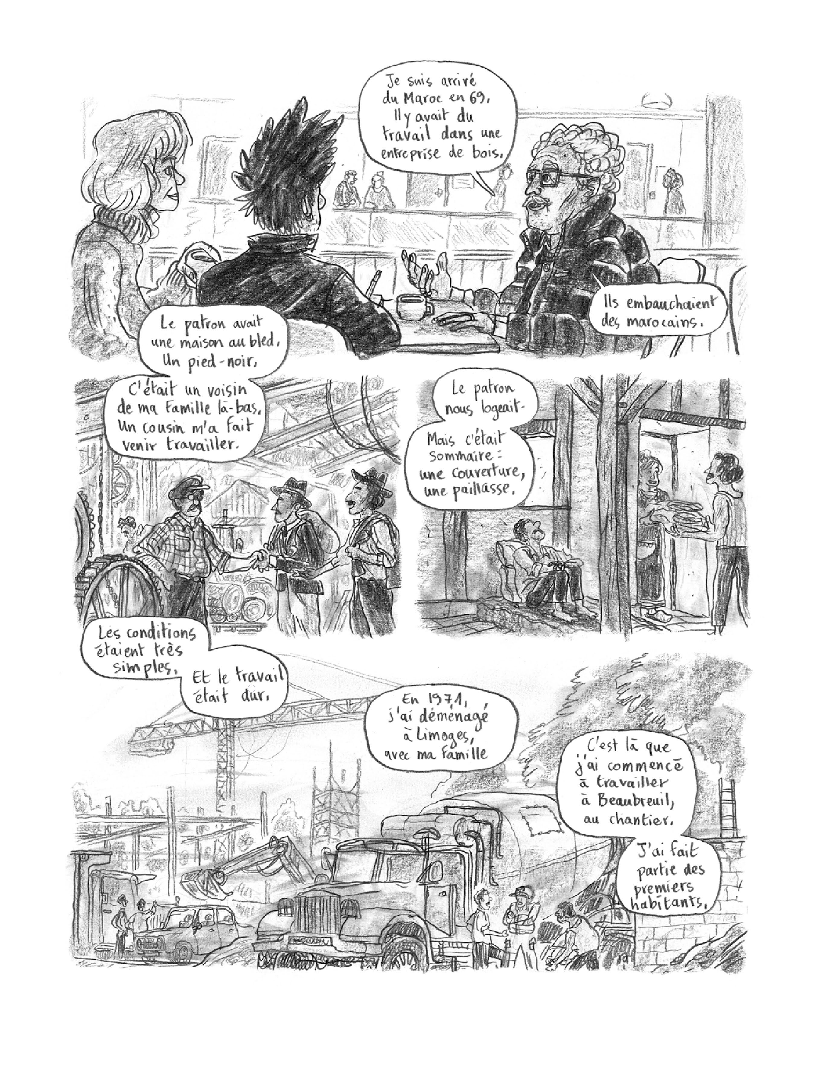 Une autre manière d’entrer en contact avec les habitants passa par des échanges avec le tissu associatif de ces quartiers : Le Café senior et Le Chapeau magique au Val de l’Aurence, Beaubreuil vacances loisirs et Le Conseil citoyen à Beaubreuil. Le Poisson put ainsi faire le portrait d’une histoire commune à ces deux quartiers. Une histoire que l’on retrouve sur l’ensemble du territoire et qui raconte la construction de notre pays.