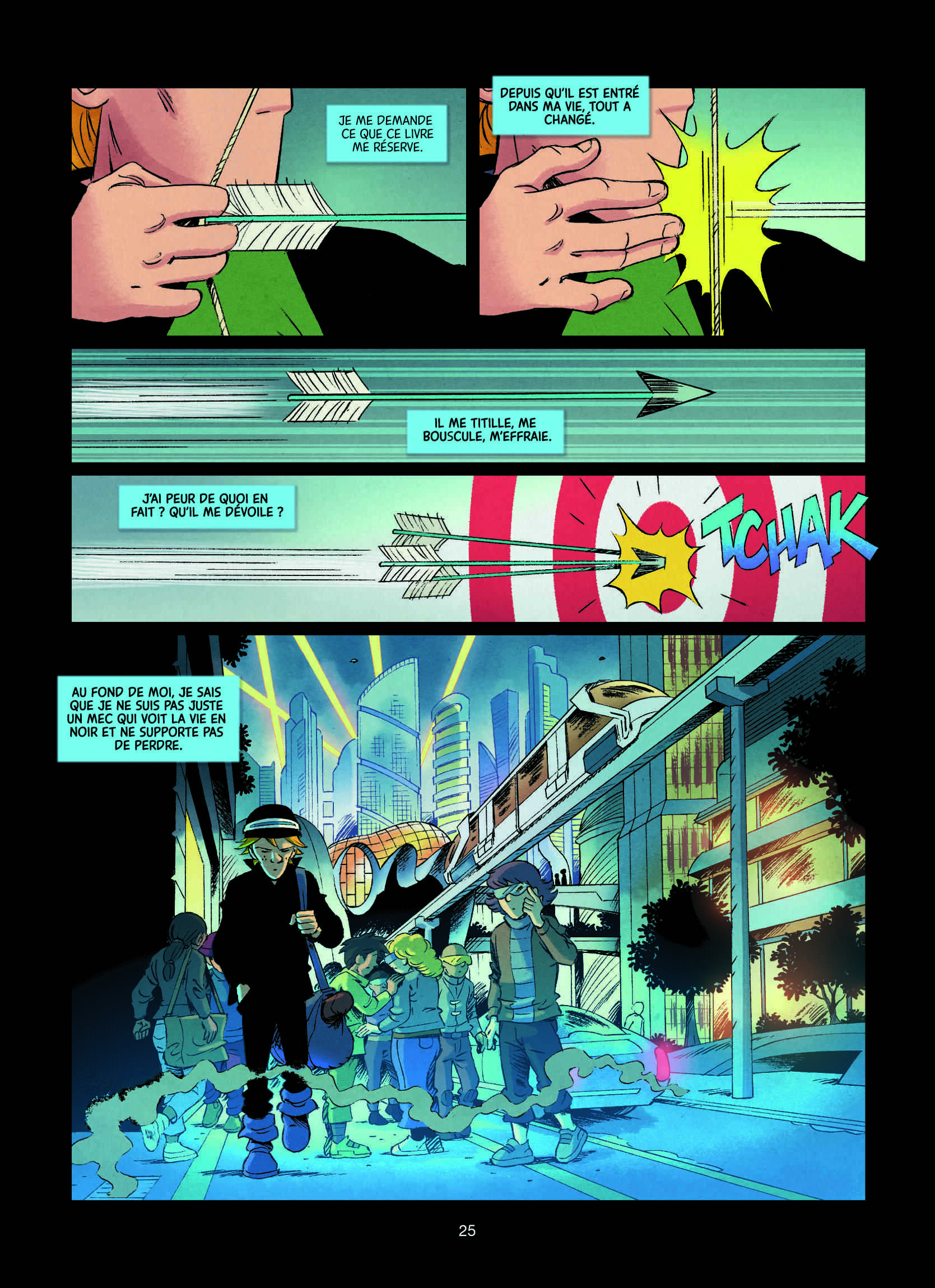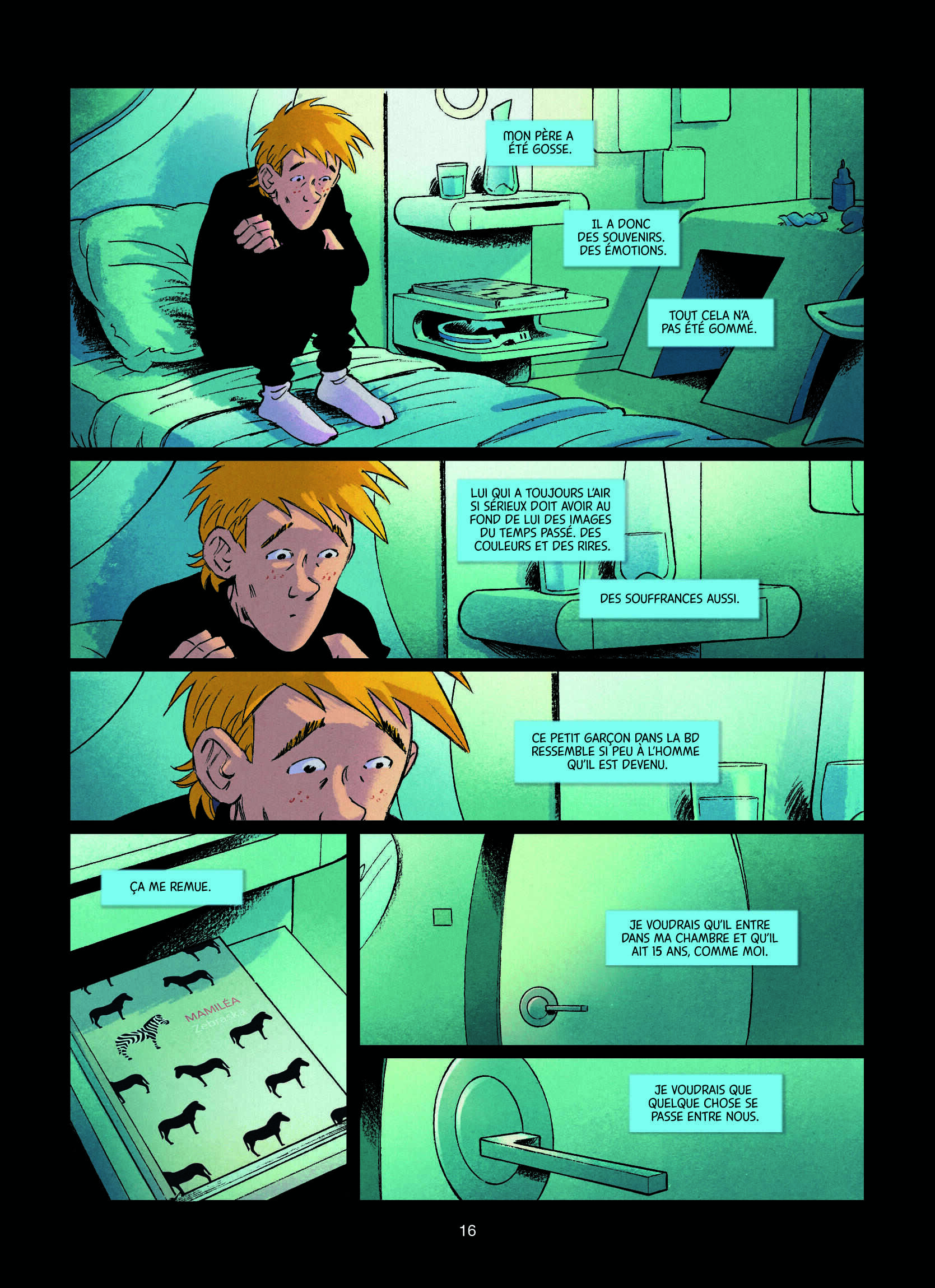 Le trait semi-réaliste, fluide, de Ludo Borecki travaille sur le même registre sensible, en mettant en évidence les troubles des personnages : de leur profonde solitude à l’exacerbation de leur imagination. Son trait clair donne naissance à des décors futuristes crédibles d’un monde né en 2037 par La Grande Bascule, une mutation sociale engendrée par un burn-out généralisé. Pour l’instant, nous n’en savons pas plus. Tous les ressorts de cette dystopie intime seront dévoilés dans le tome 2 qui sera publié à l’automne prochain.