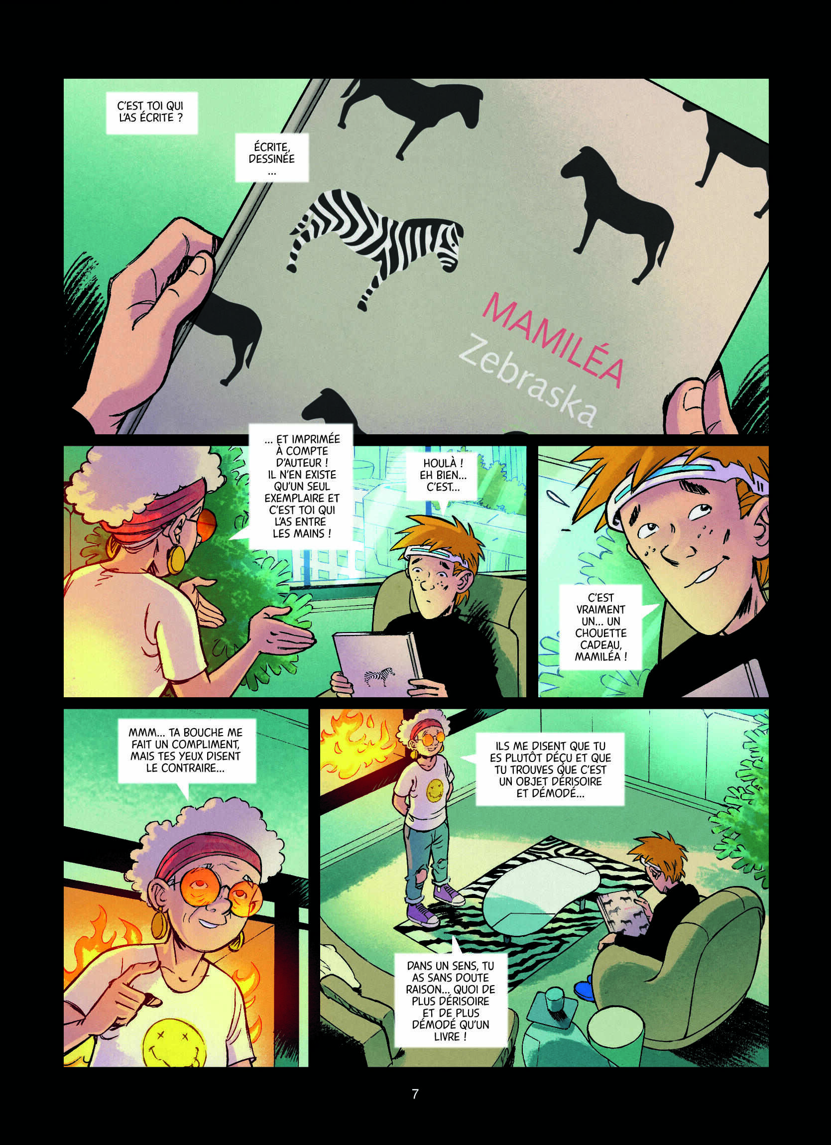 Ce jour de Noël 2025, Marty reçoit une bande dessinée auto-éditée en un seul exemplaire écrit et dessinée par Mamiléa au titre surprenant : « Zebraska ». L’explication est toute simple : le personnage principal est un drôle de zèbre. Dubitatif, Marty commence quand même la lecture le soir même. Il ne le sait pas encore, mais sa vie va en être transformée.