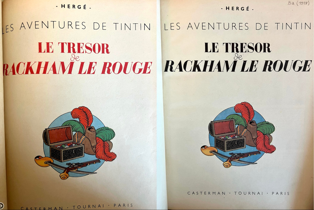 Charles Lesne écrit le 7 février 1946 : « J’ai fait envoyer le tirage en noir de “Rackham”. Nous avons profité d’un temps d’arrêt de la presse pour passer tout ce noir à ton intention. » En effet, le nouveau tirage de « Rackham », prévu chez un autre imprimeur (l’Electrotypie de Genval à Bruxelles), ne pourra être fourni par cette firme avant 3 mois. Ainsi, l’édition alternée non reliée de ce titre a fait l’objet d’un tirage spécial chez Casterman à Tournai début 1946 : rareté insigne pour les collectionneurs (on en a vu passer deux exemplaires en vente publique en 20 ans !).
