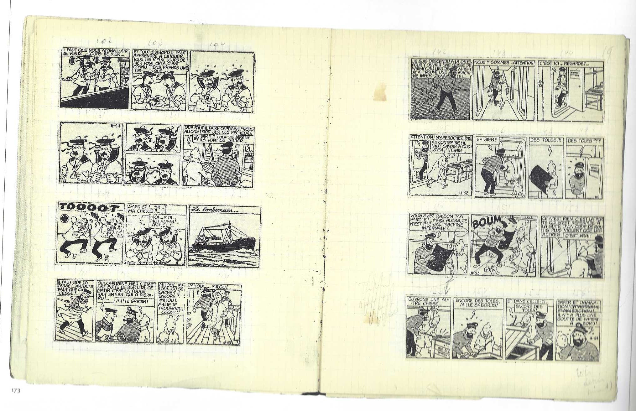 Extrait du cahier d’Hergé monté avec les strips du Soir.
