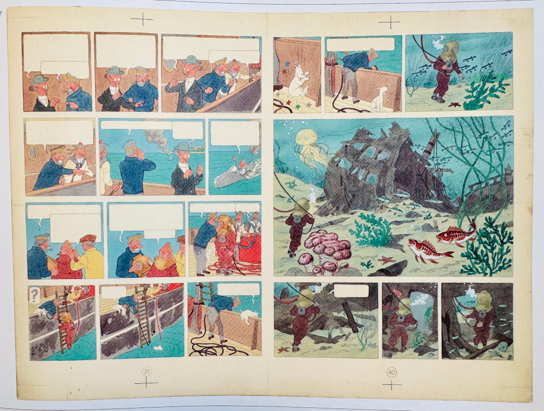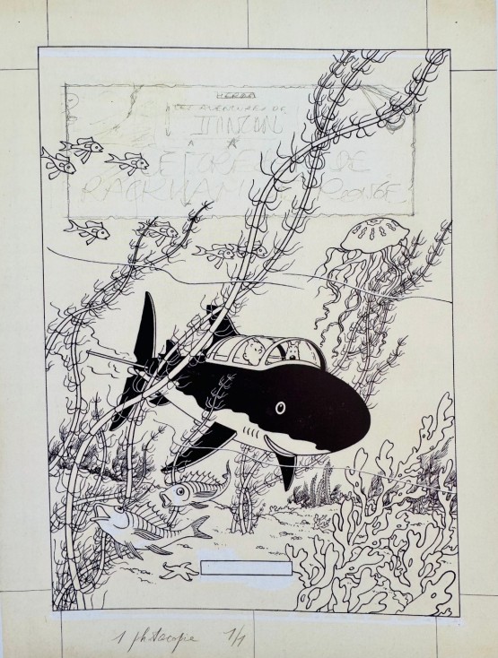 Maquette « Jouons avec Tintin à la mer », contenant de magnifiques dessins tirés de l’album (1974).