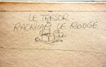 Nouvelle couverture de 1954 : comme pour la plupart des albums, Hergé modifie la maquette des couvertures « Tintin » à partir de 1952, la plupart du temps en adoptant un encadré pour le titre, sous forme de parchemin pour le « Trésor ». À ces nouvelles couvertures correspondent à chaque fois de nouvelles gouaches de mise en couleurs, telle celle du « Trésor de Rackham le Rouge » datée de 1954 (collection particulière).