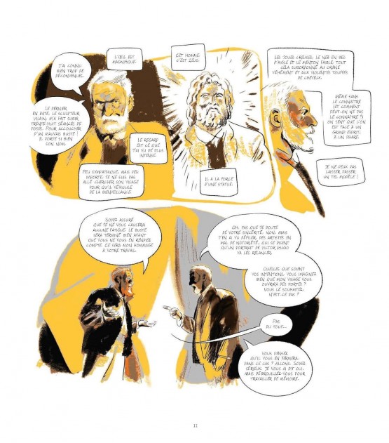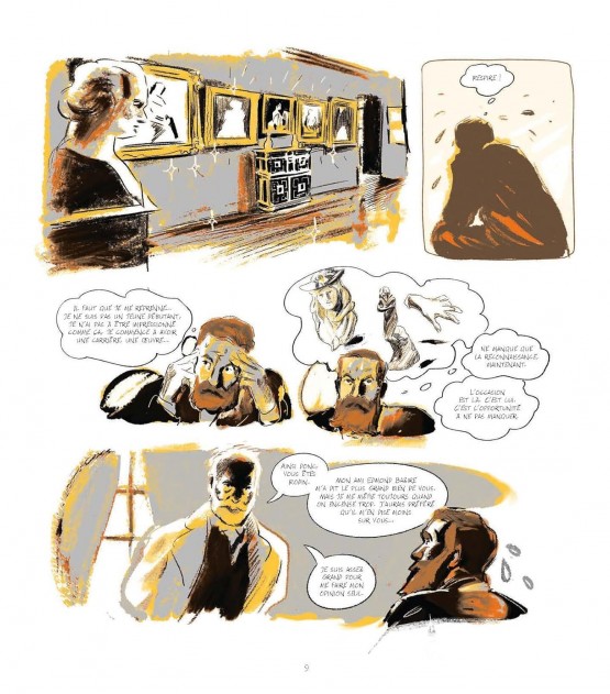 Par leur intermédiaire, une relation « imaginaire » va s’établir entre Rodin et Michel-Ange. La voix de ce mentor écrasant, par ailleurs source d’inspiration constante, questionne le jeune sculpteur à travers le temps. Et c’est cette confrontation intérieure, symbolique et esthétique, qui va structurer le récit et devenir le moteur d’une réflexion sur l’art, sous la plume et le pinceau aussi vigoureux qu’élégant de Xavier Coste : lequel réussit à donner vie aux sculptures des deux surdoués et à traduire picturalement les tensions de ce duel onirique, volontairement romancé, mais qui s’appuie sur une solide documentation.